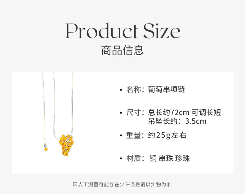 ブドウのチェーンのネックレス2025年の新型の気質は軽くて豪華な鎖の鎖は簡単です。
