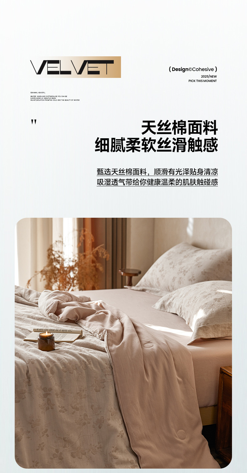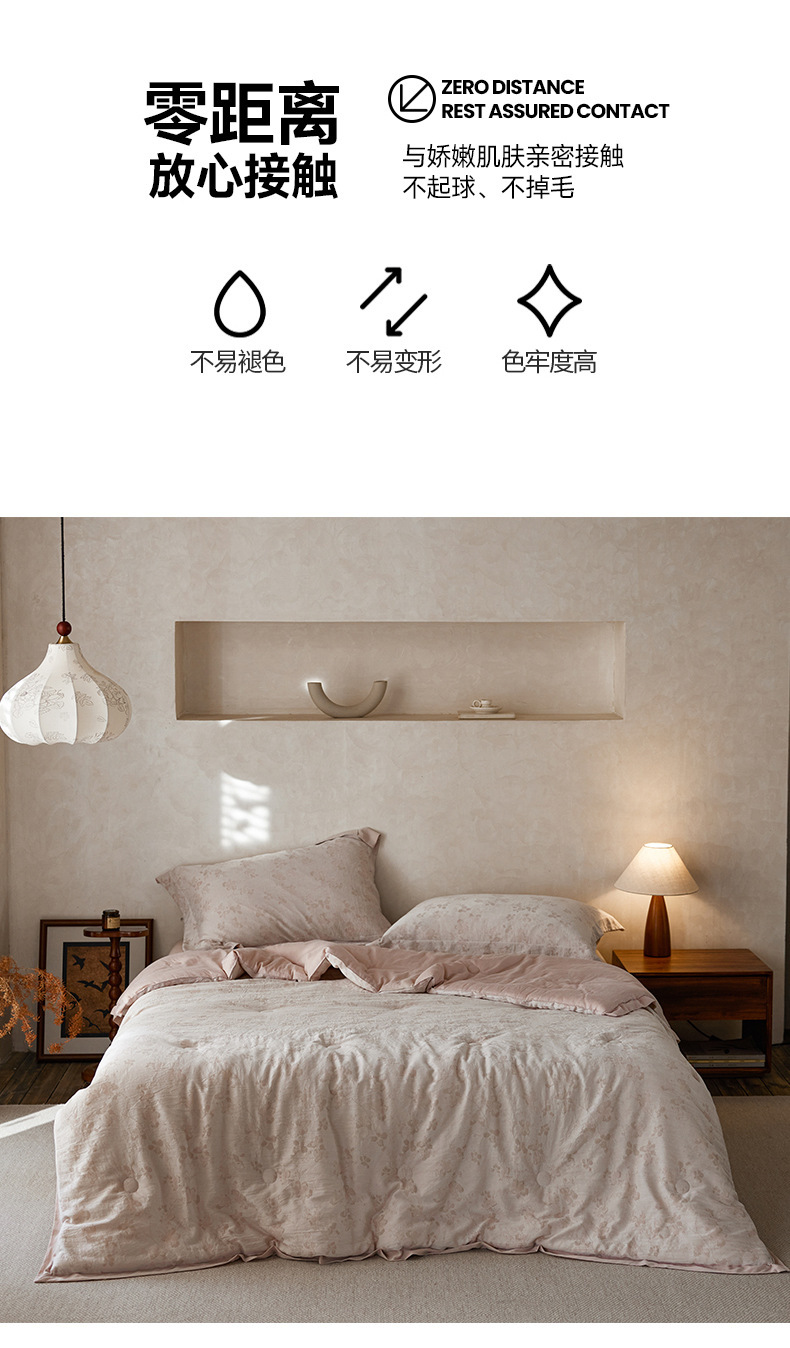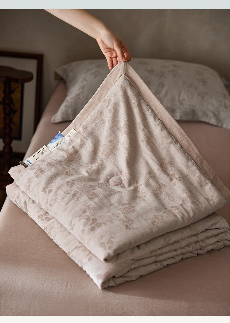 轻奢液氨天丝棉色织提花冷感空调薄被可机洗大豆纤维夏被四件套