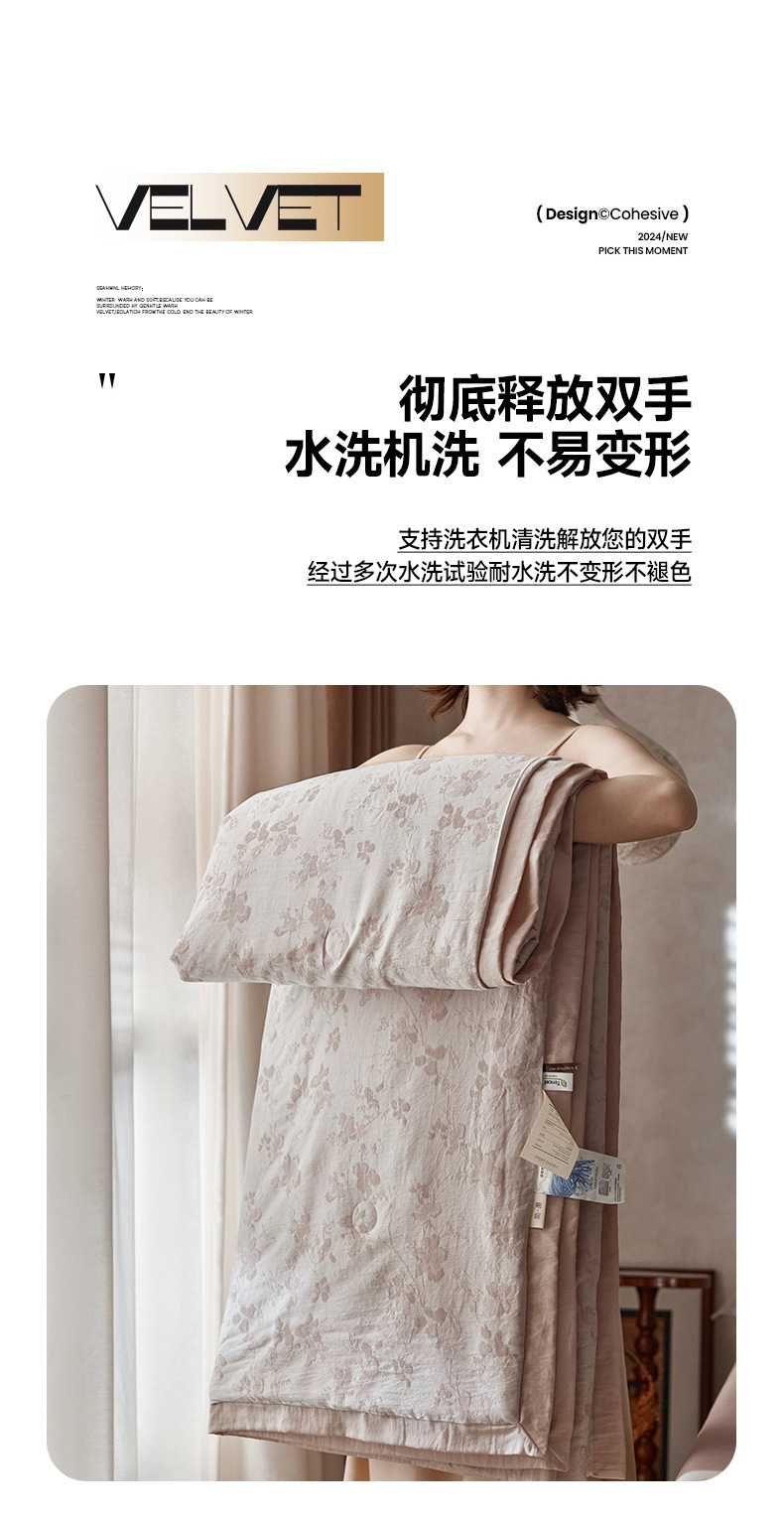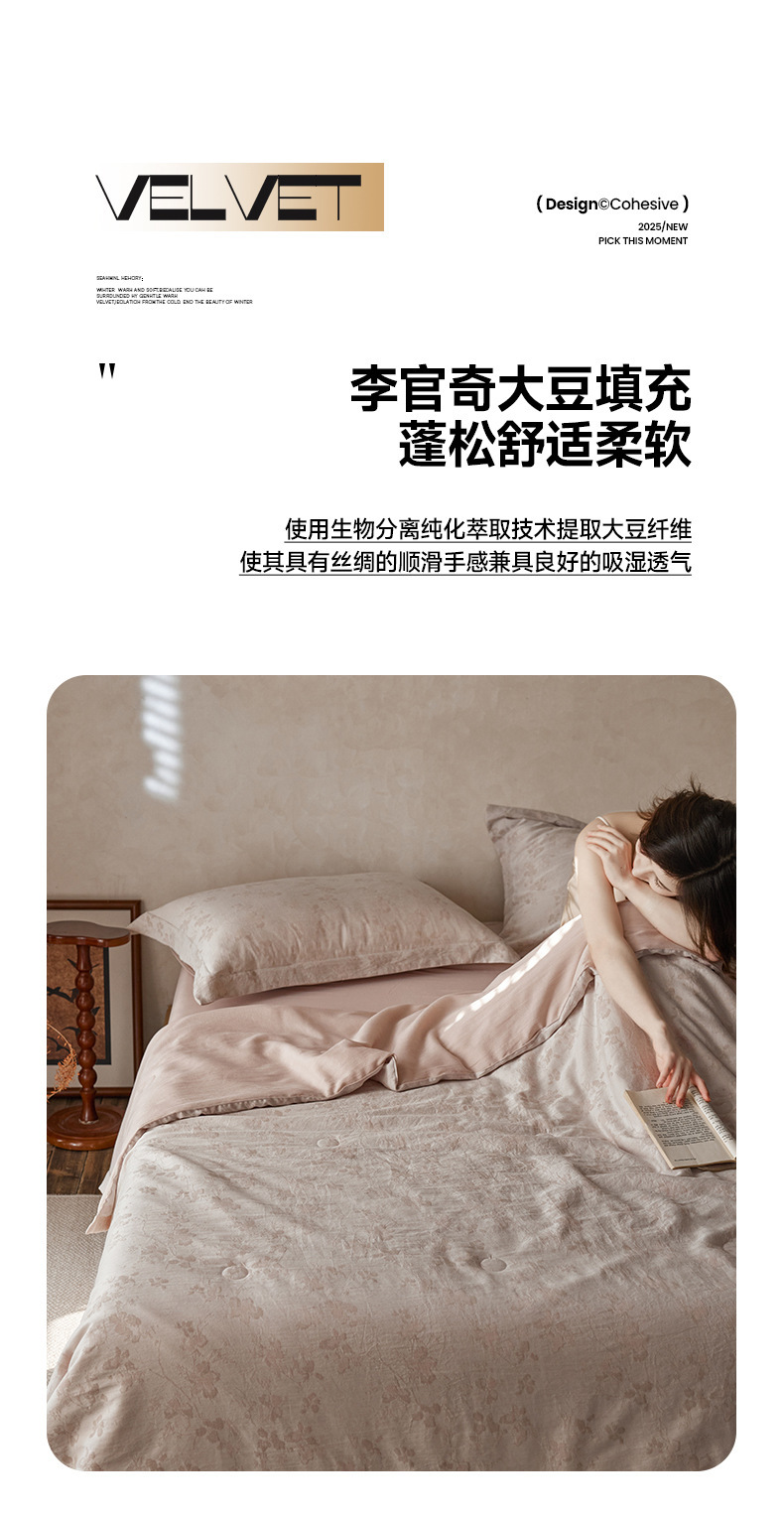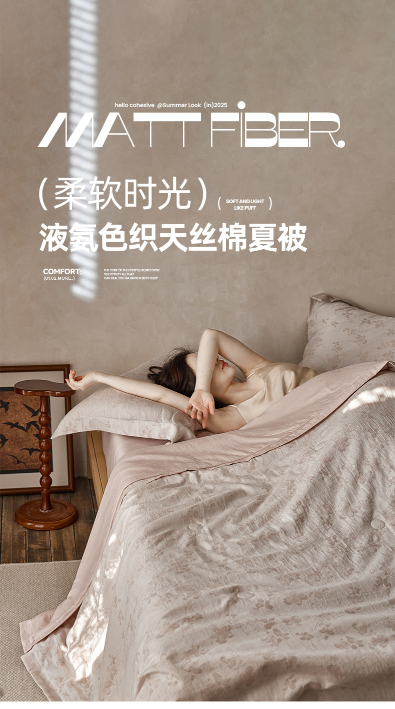 轻奢液氨天丝棉色织提花冷感空调薄被可机洗大豆纤维夏被四件套