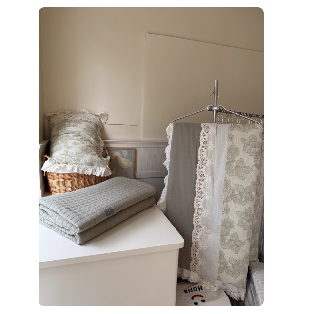 韩国大鹅全棉纱布纯色小格子绗缝床盖法式花卉镂空花边棉麻春秋被