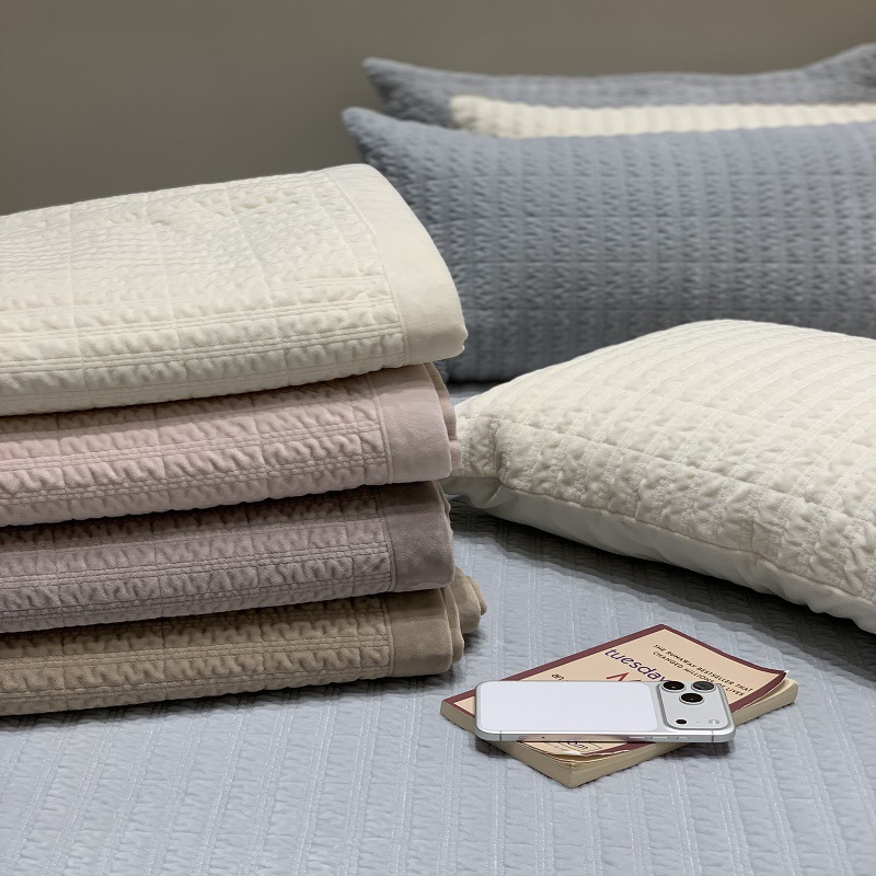 韩国大额秋冬款一面绒一面莫代尔绗缝夹棉床盖三件套榻榻米炕盖