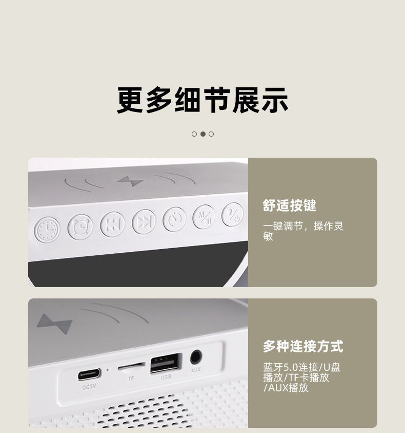 大G bluetoothスピーカー雰囲気灯時計目覚まし時計携帯電話無線充電音響学生寮家庭用デスク
