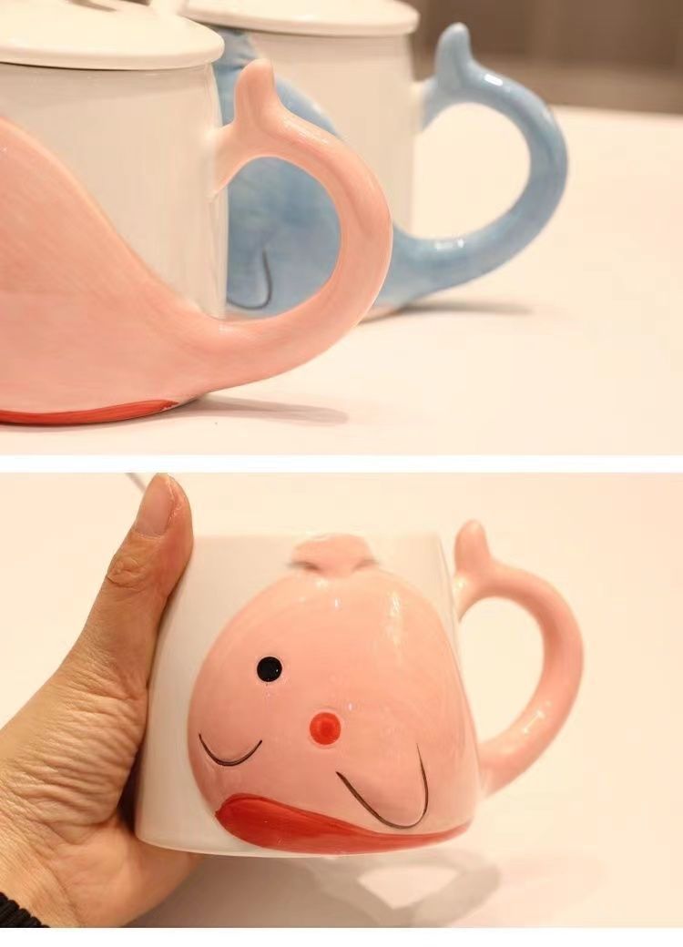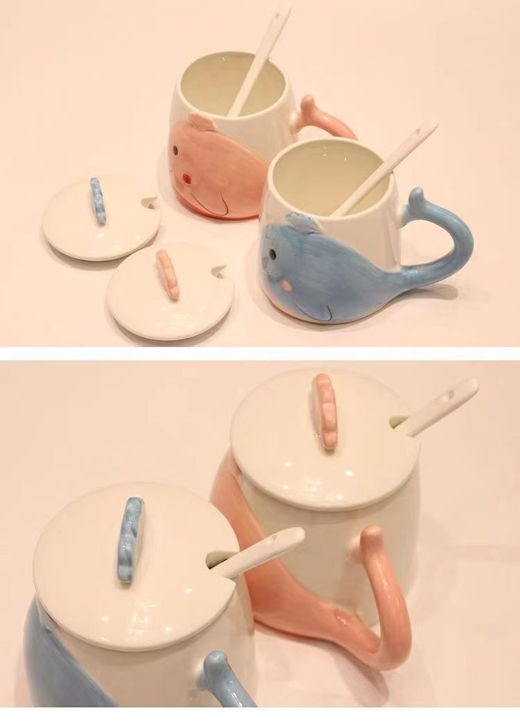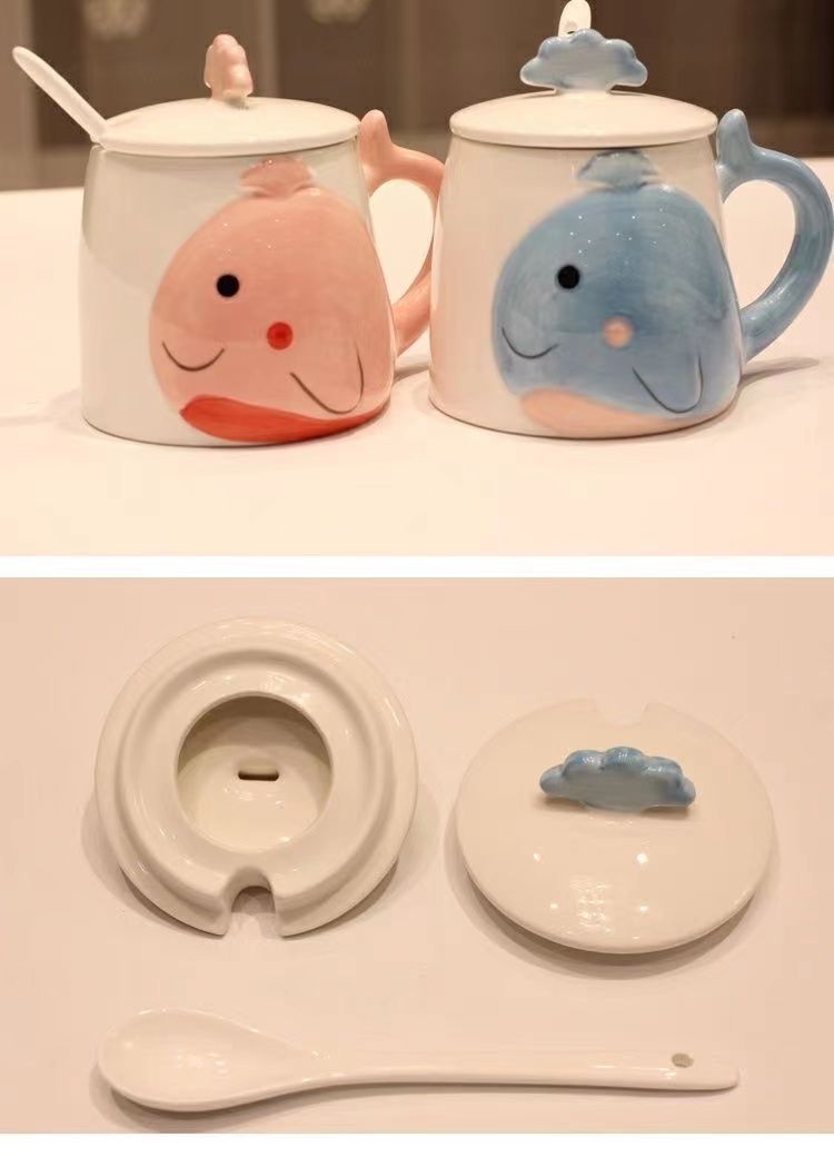 卡通鲸鱼杯马克杯创意可爱陶瓷杯子带盖勺个性水杯情侣杯早餐杯