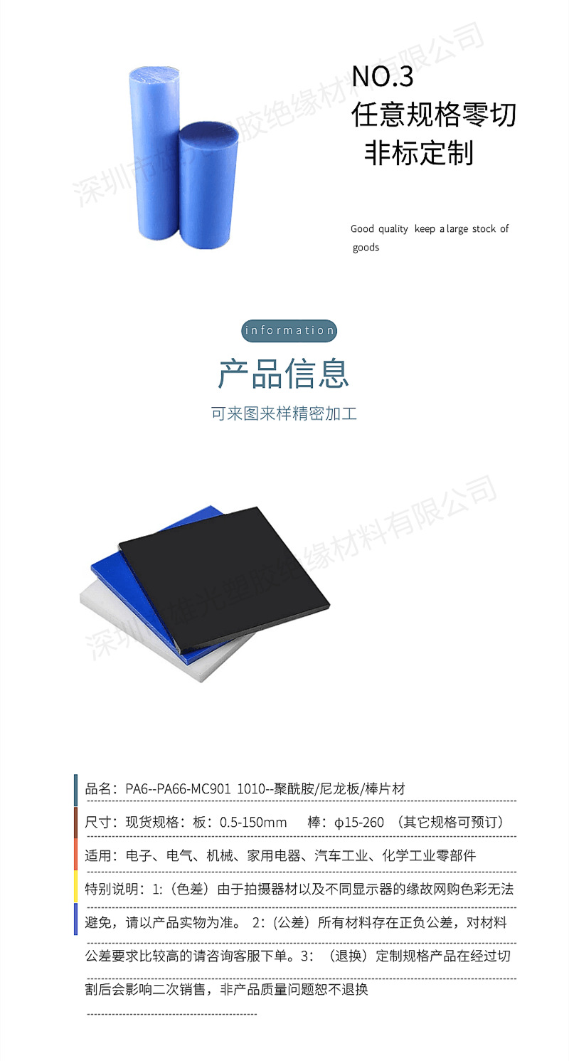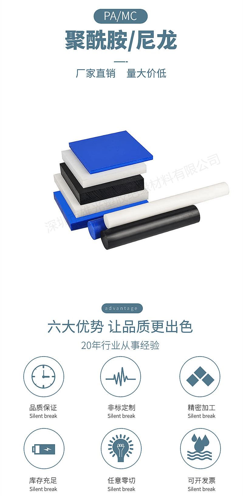 白色耐摩耗性 PA6 ナイロン板棒耐摩耗性 MC 青色ナイロン正方形厚板黒板ナイロン板シート