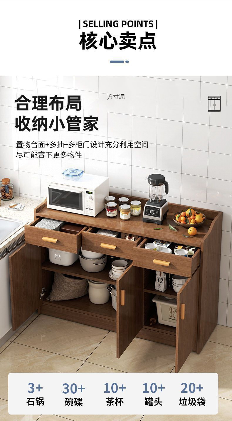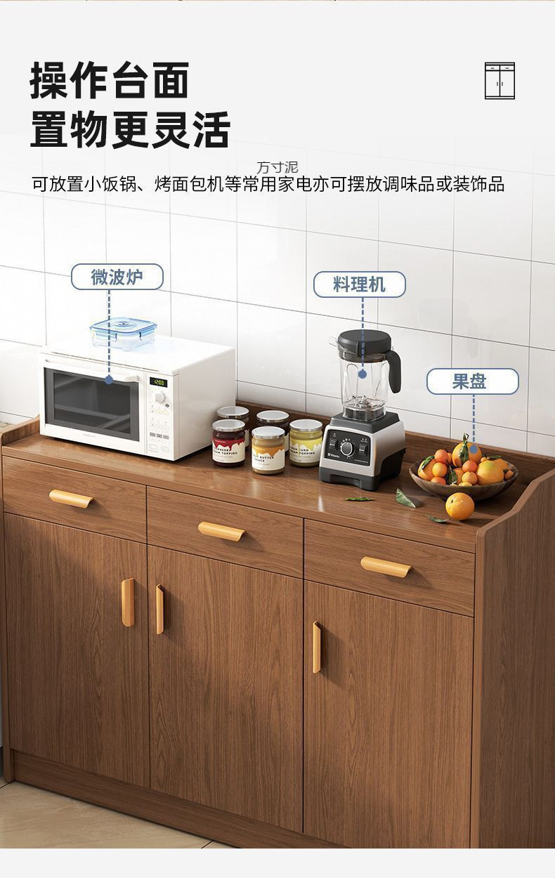 靠墙储物柜收纳柜厨房橱柜茶水柜客厅餐边柜子家用置物实木色备餐