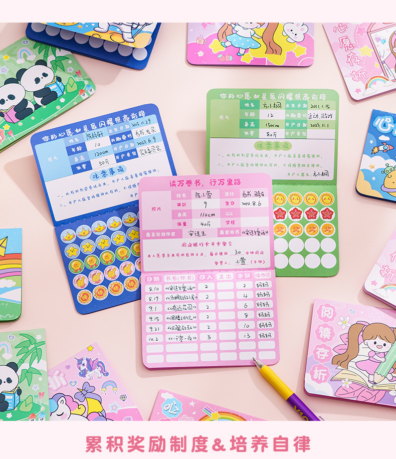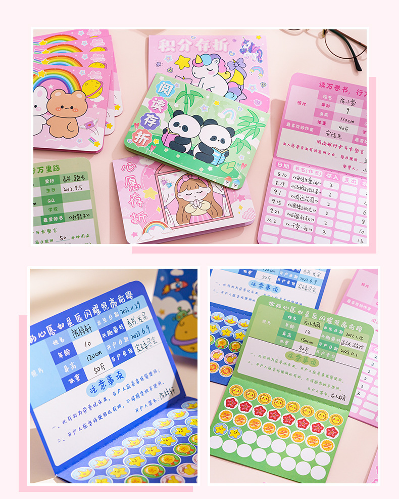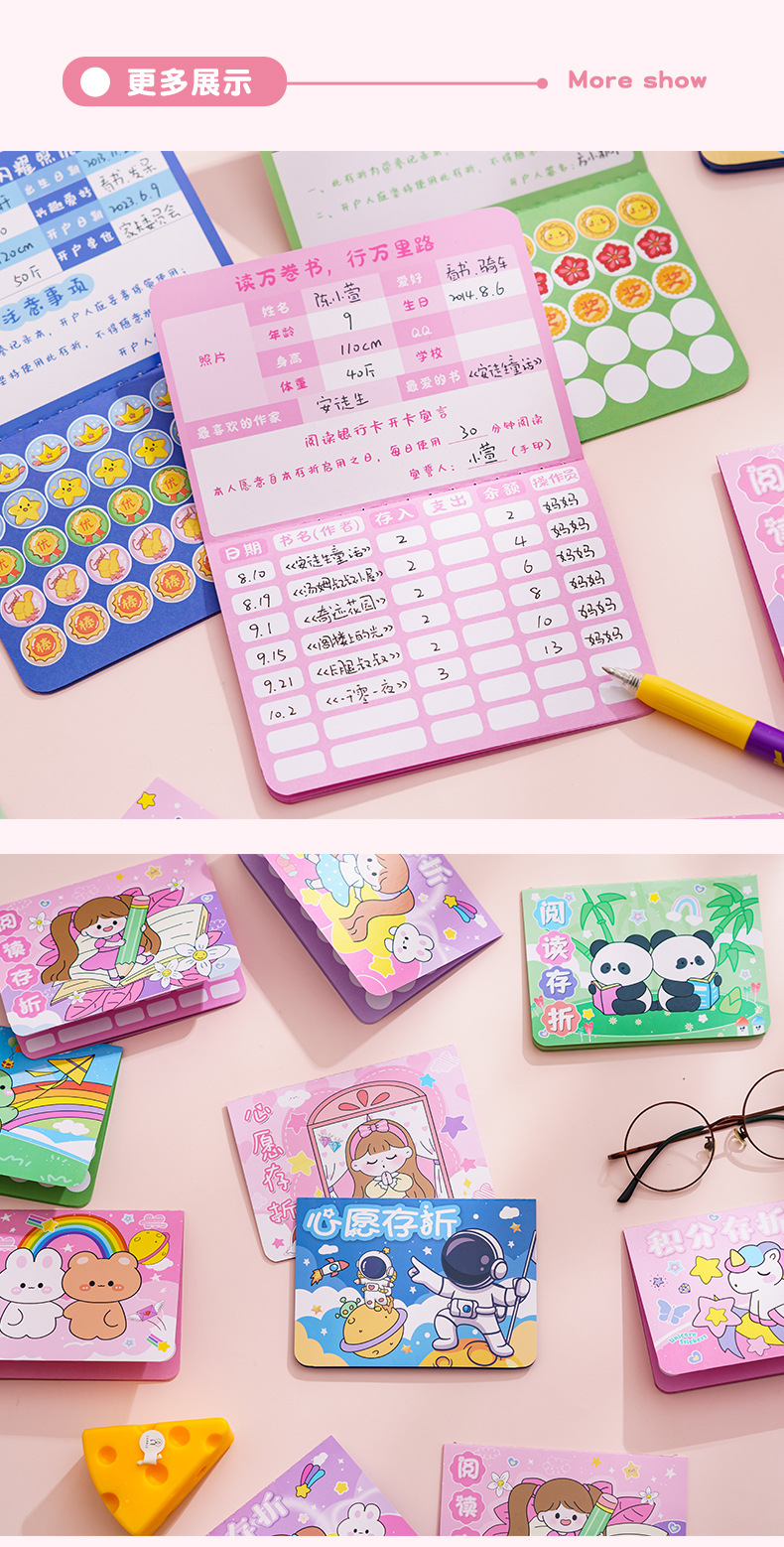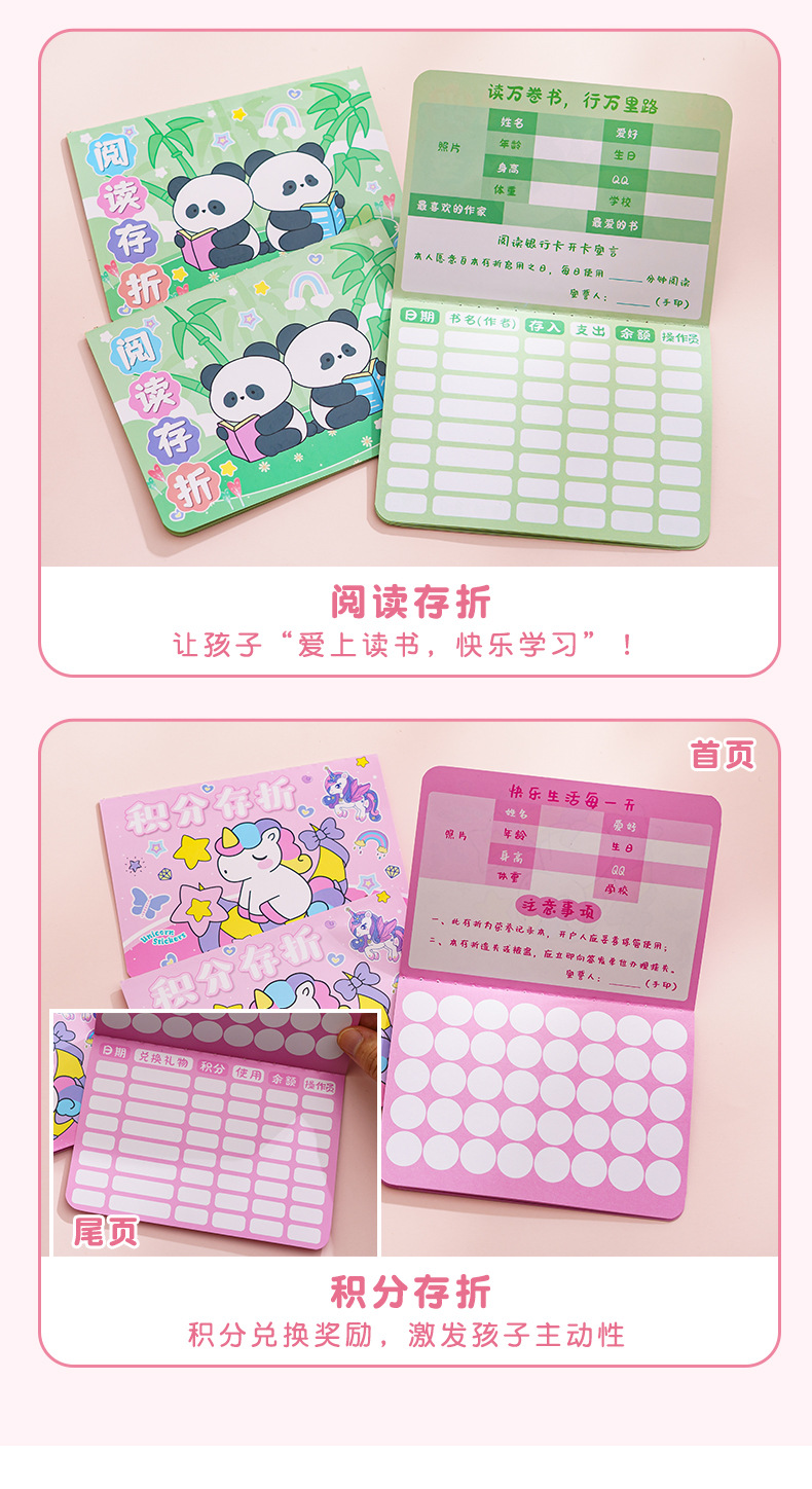 儿童阅读存折积分存折激励学生积分奖励亲子登记册可爱卡通记录卡