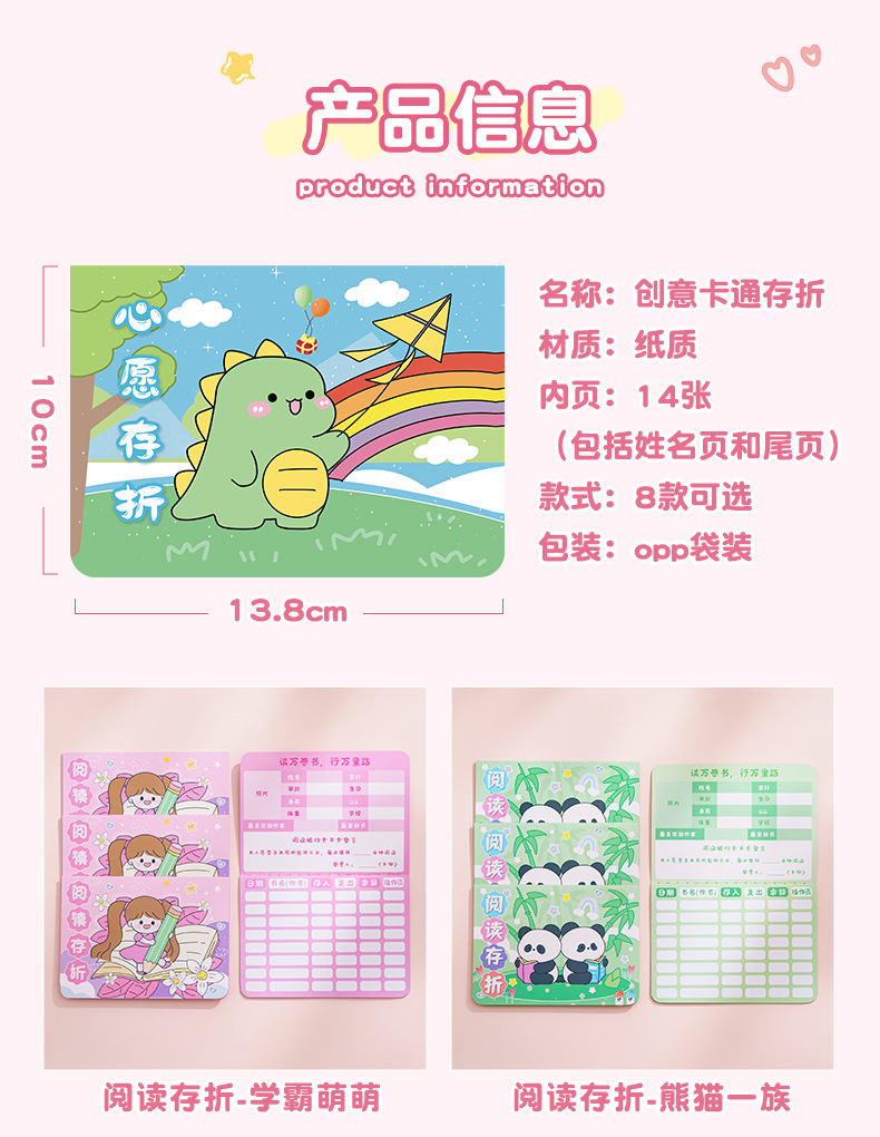 儿童成长阅读心愿存折小学生可爱卡通读书卡片积分奖励卡英语存折