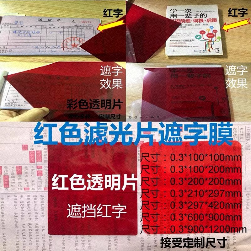 PVC 赤いプラスチックシート単語ブロック赤い文字透明フィルター単語ブロック自己テストカードフィルムバックアート A4