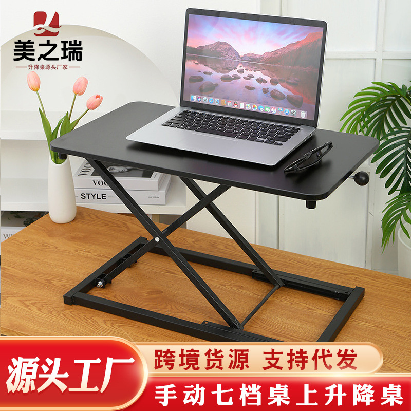 ノートパソコンのデスク7段手動オフィステーブル用デスクトップが高くなった昇降台はテーブルの上に立っている