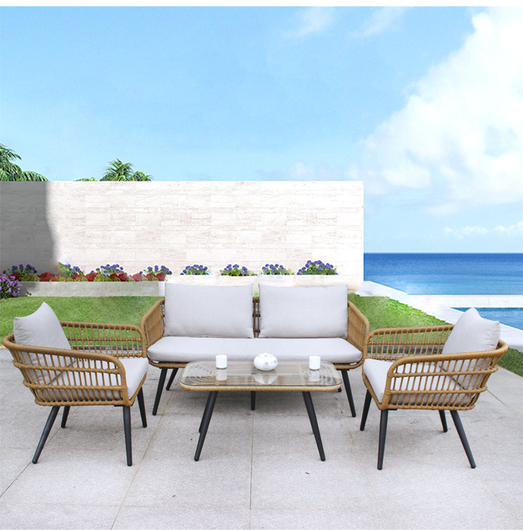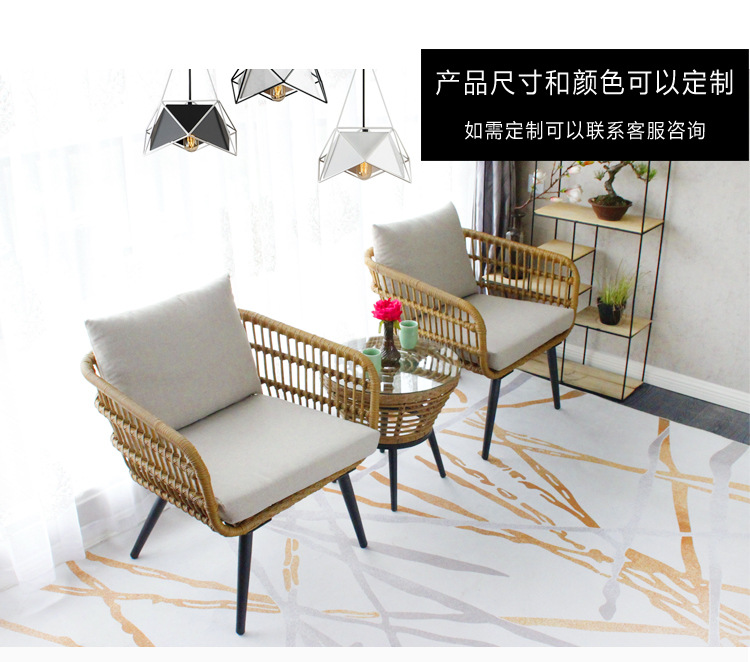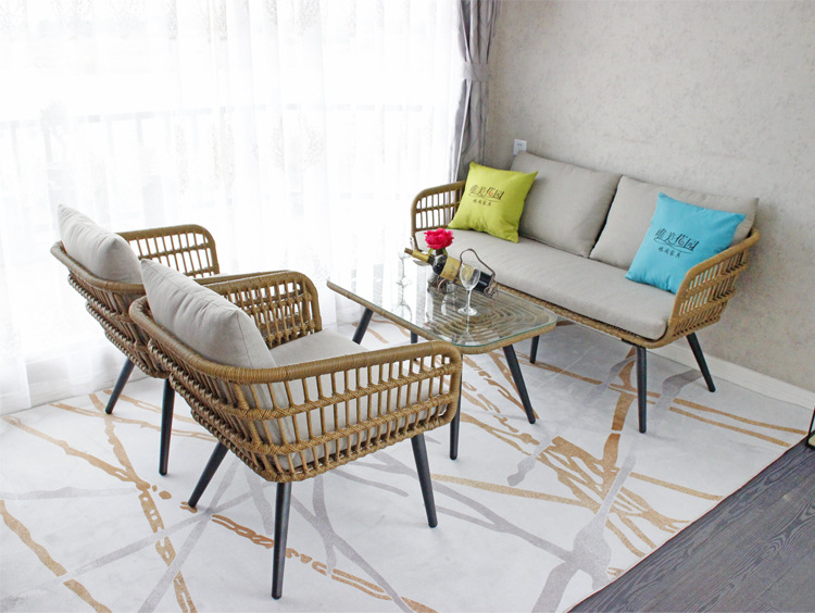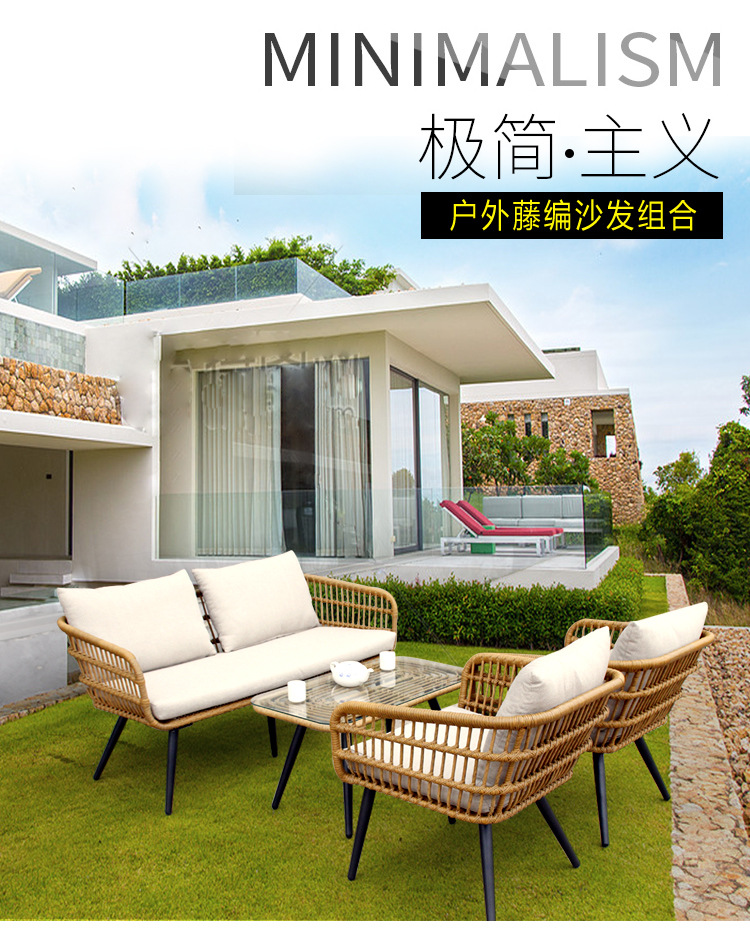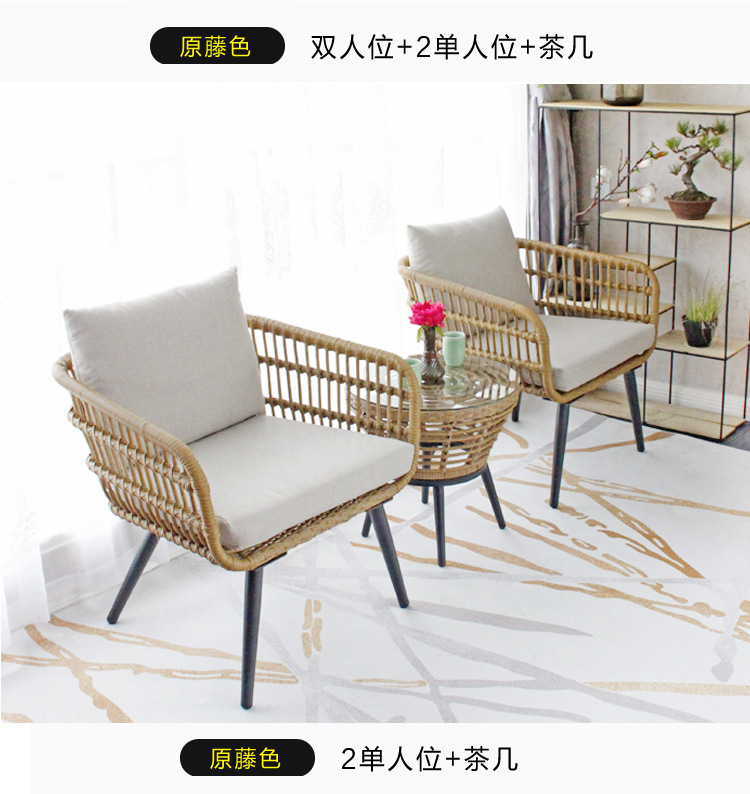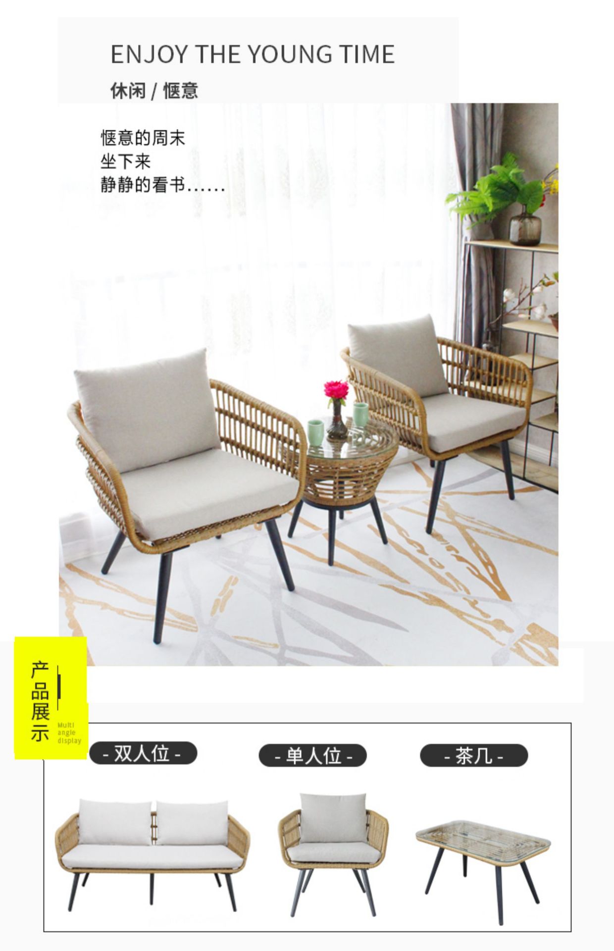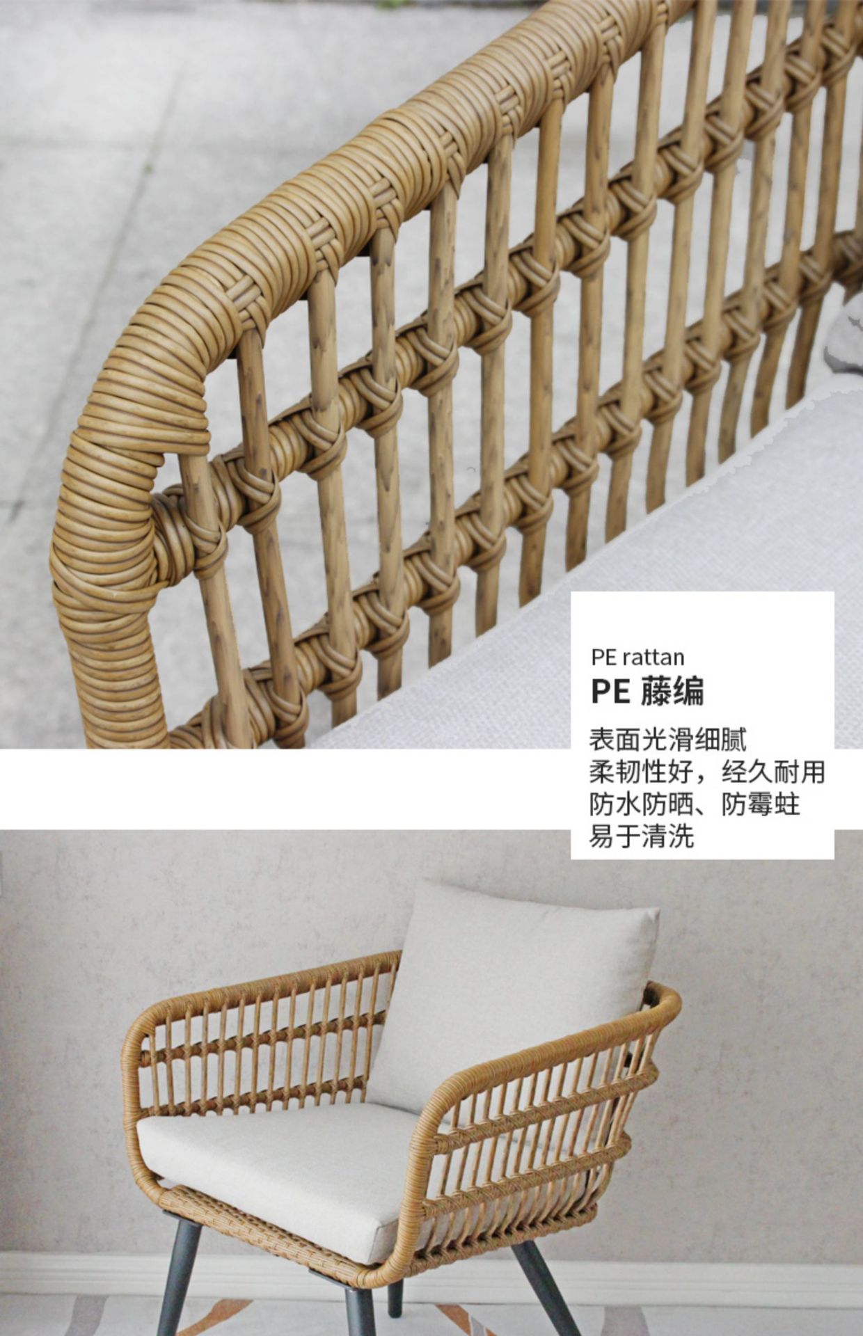 屋外籐椅子ソファ組み合わせバルコニー営業部北欧中庭屋外防水レジャー家具籐ソファp^