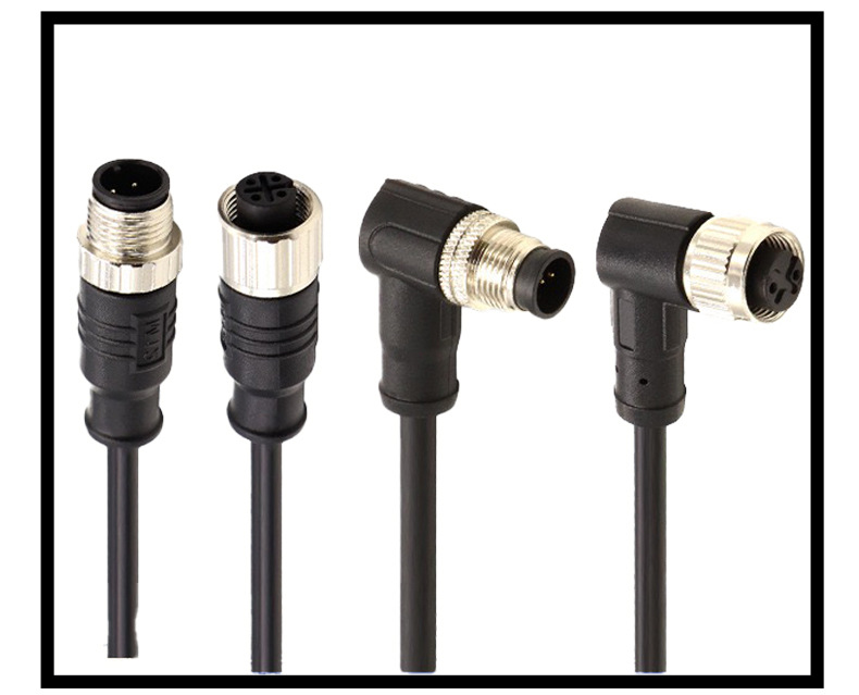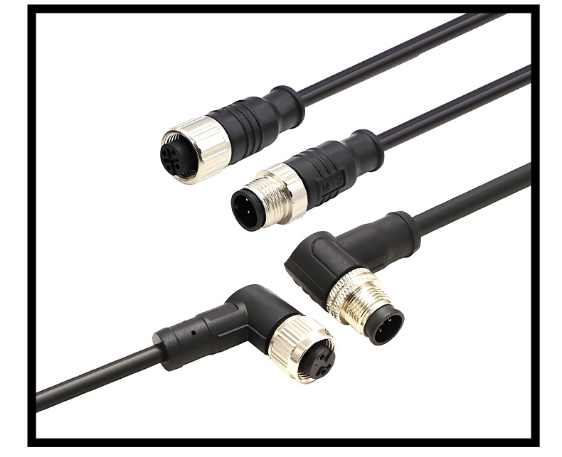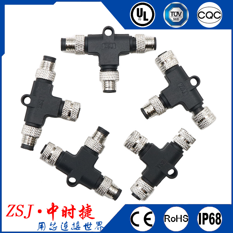 M12ネジ防水ケーブル2~6芯オス・メスT型コネクタLED照明電源多芯センサー