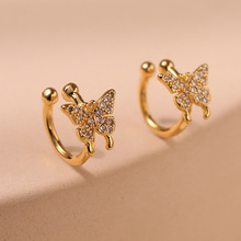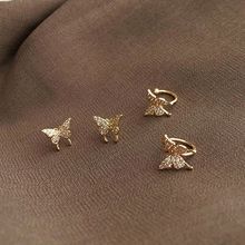 2025 新しいジュエリーフラッシュダイヤモンドバタフライイヤリング韓国ライト高級気質ニッチイヤーカフスーパー妖精イヤリング