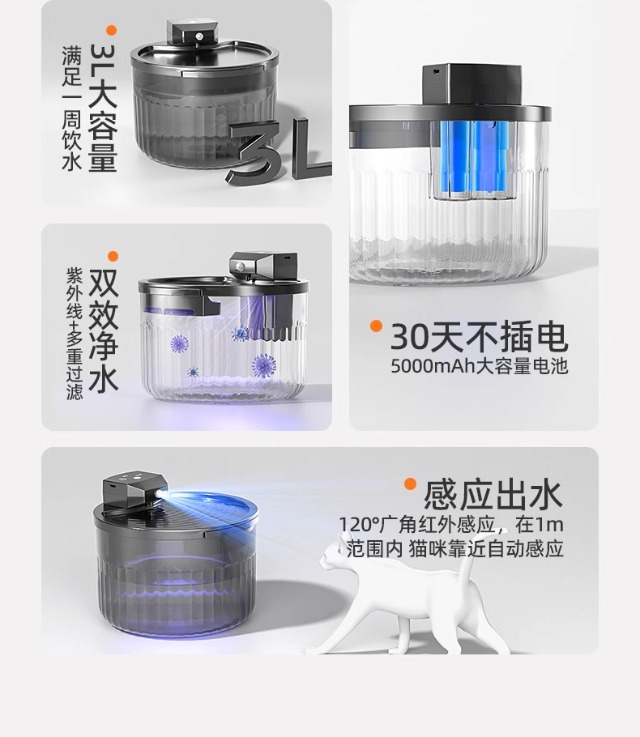 猫の浄水器は電気を入れないで無線でペットの知能を感知します。