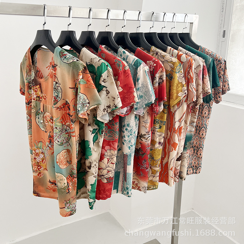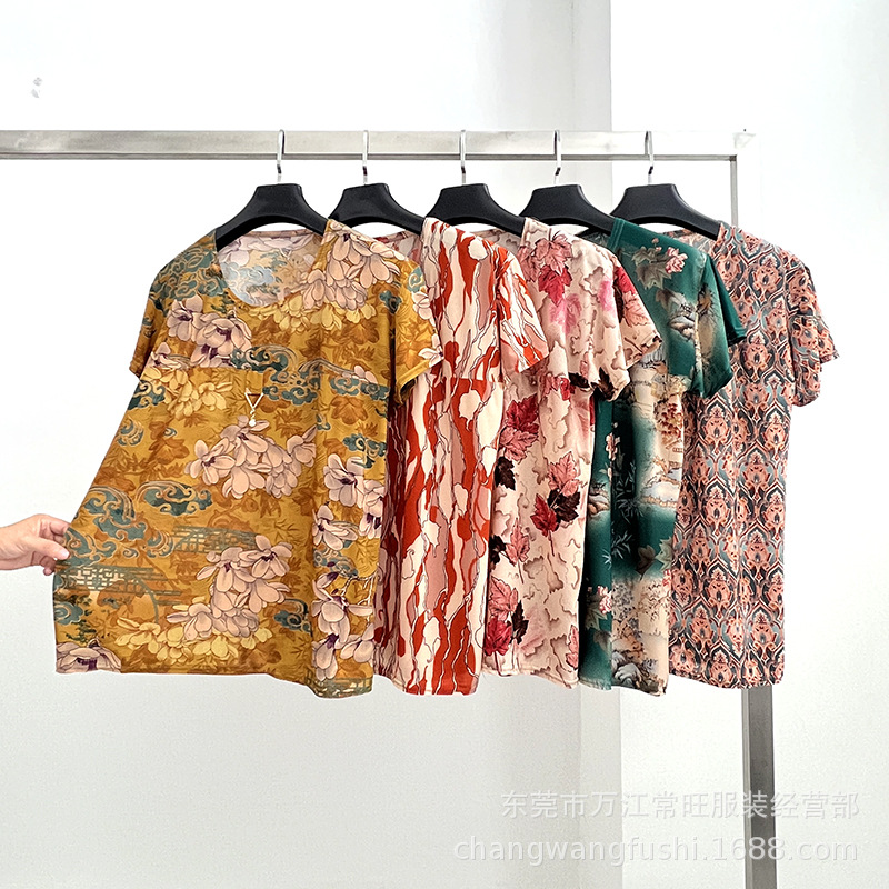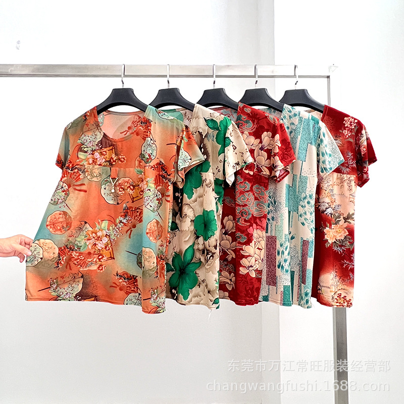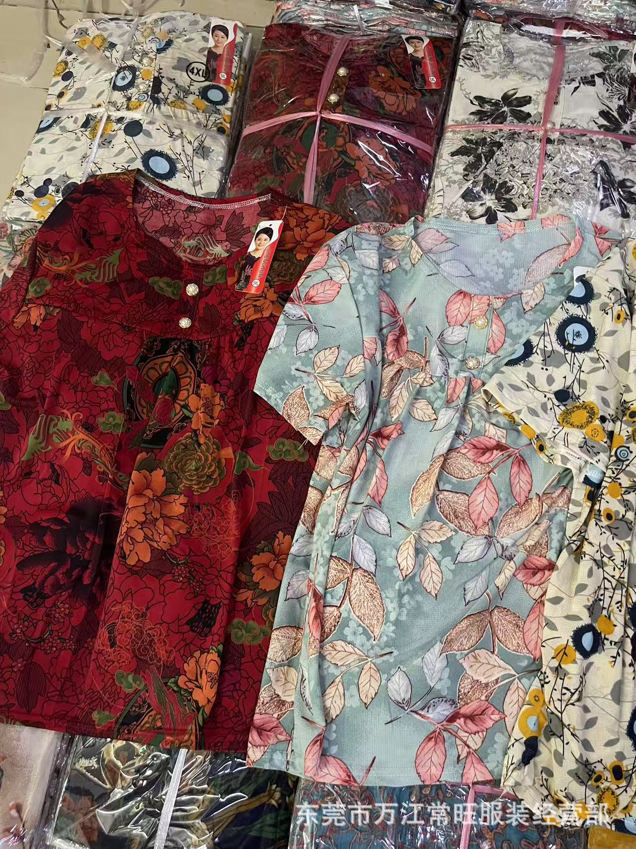 1688服装卸売り夏の対外貿易女装半袖ゆるいカジュアル中高年上着が江湖に出店している