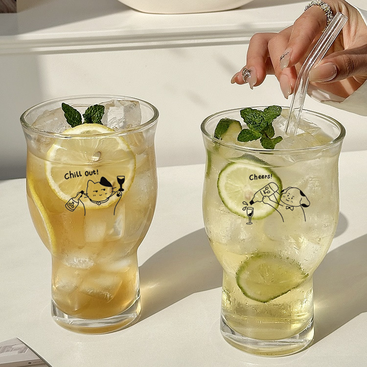 インスタ风オリジナル可爱い子犬グラス饮み水カップミルクコーヒー朝食オート麦カップジュース饮み物カップ