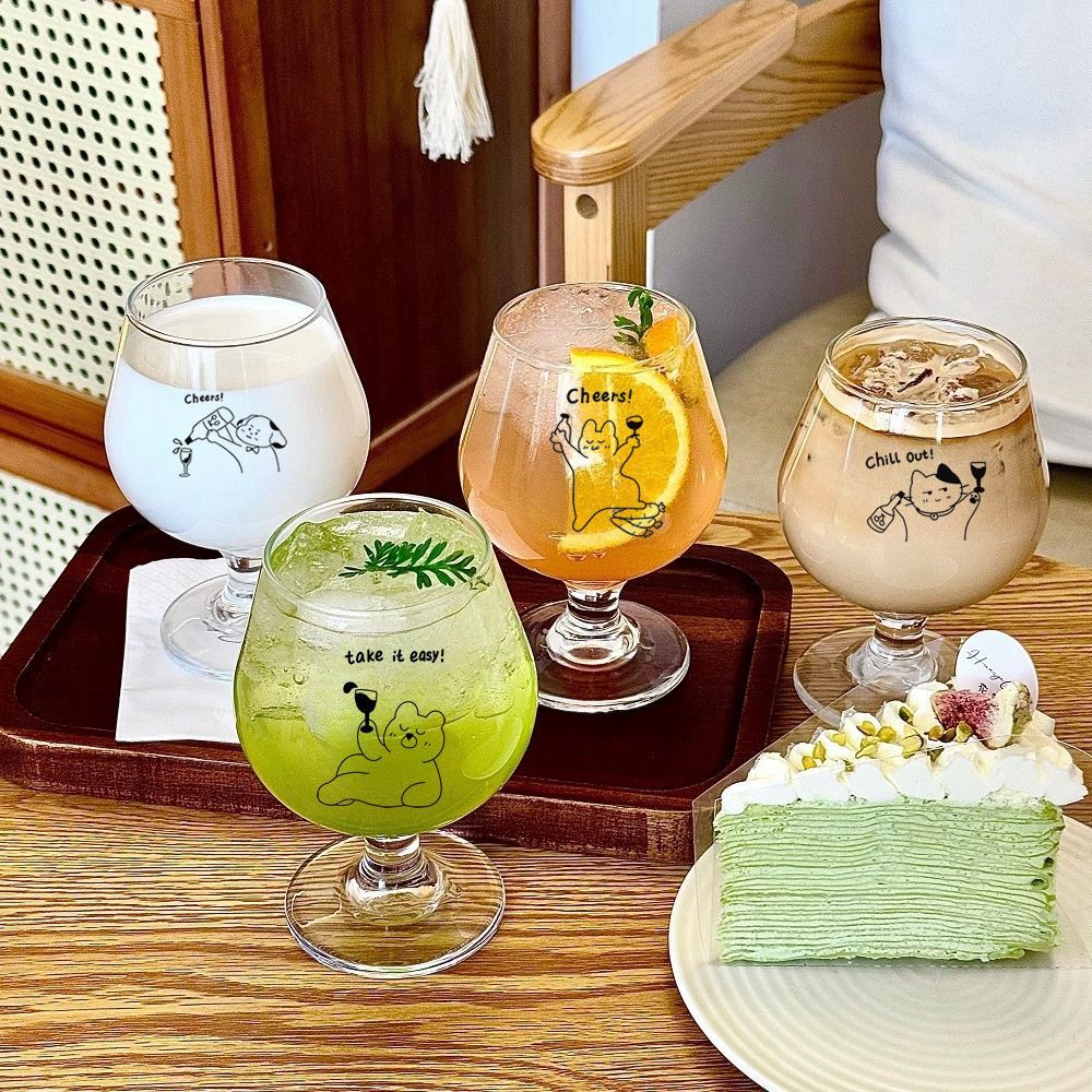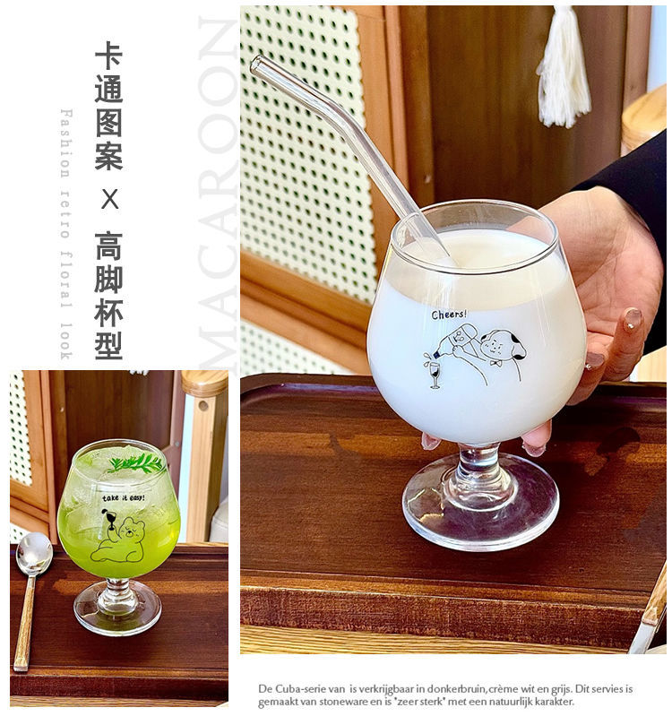 原创韩式可爱小狗ins风玻璃杯高脚杯甜品杯果酒杯果汁杯气泡水杯