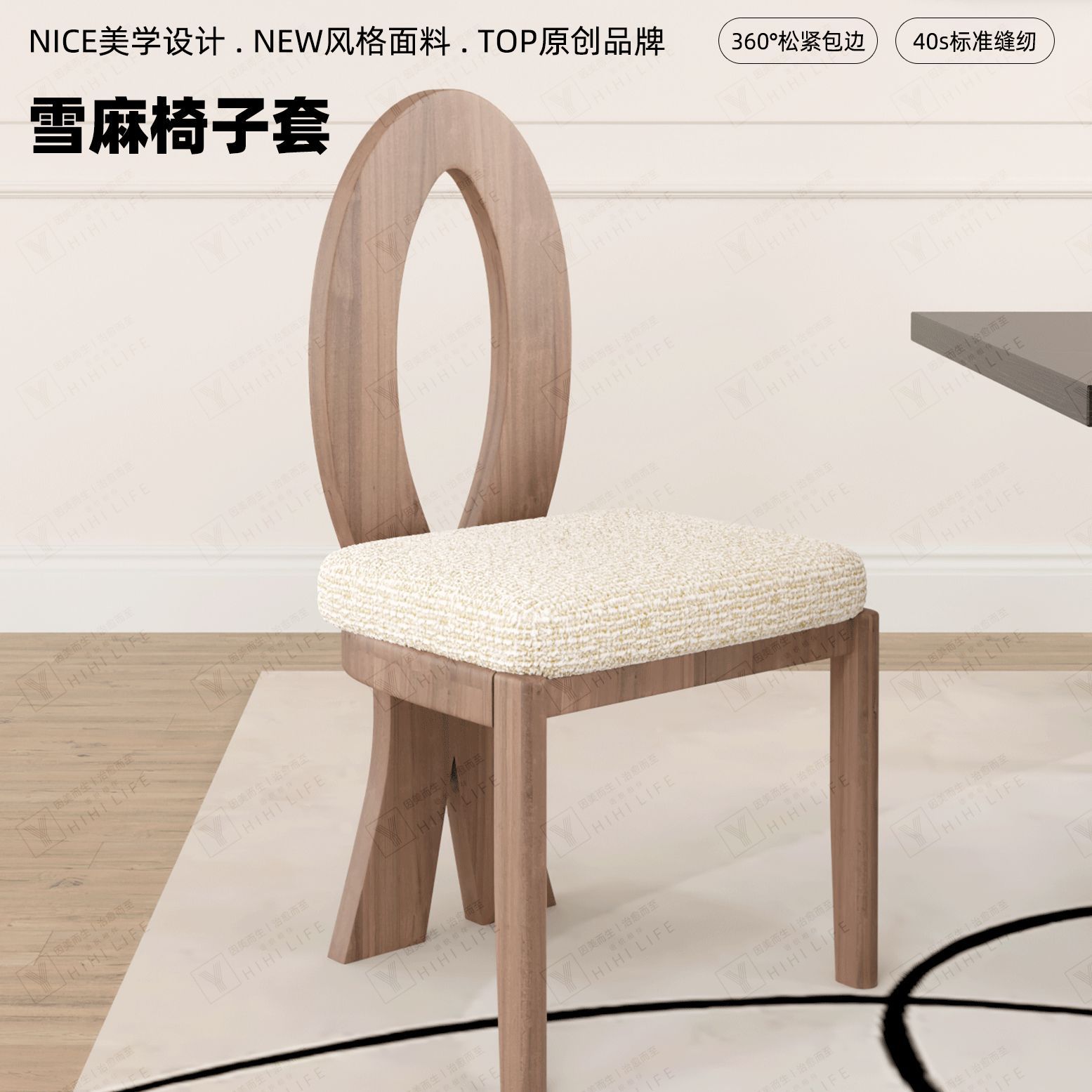 雪子麻感高端椅子套罩家用万能凳子罩套牛角椅面套实木餐椅保护套