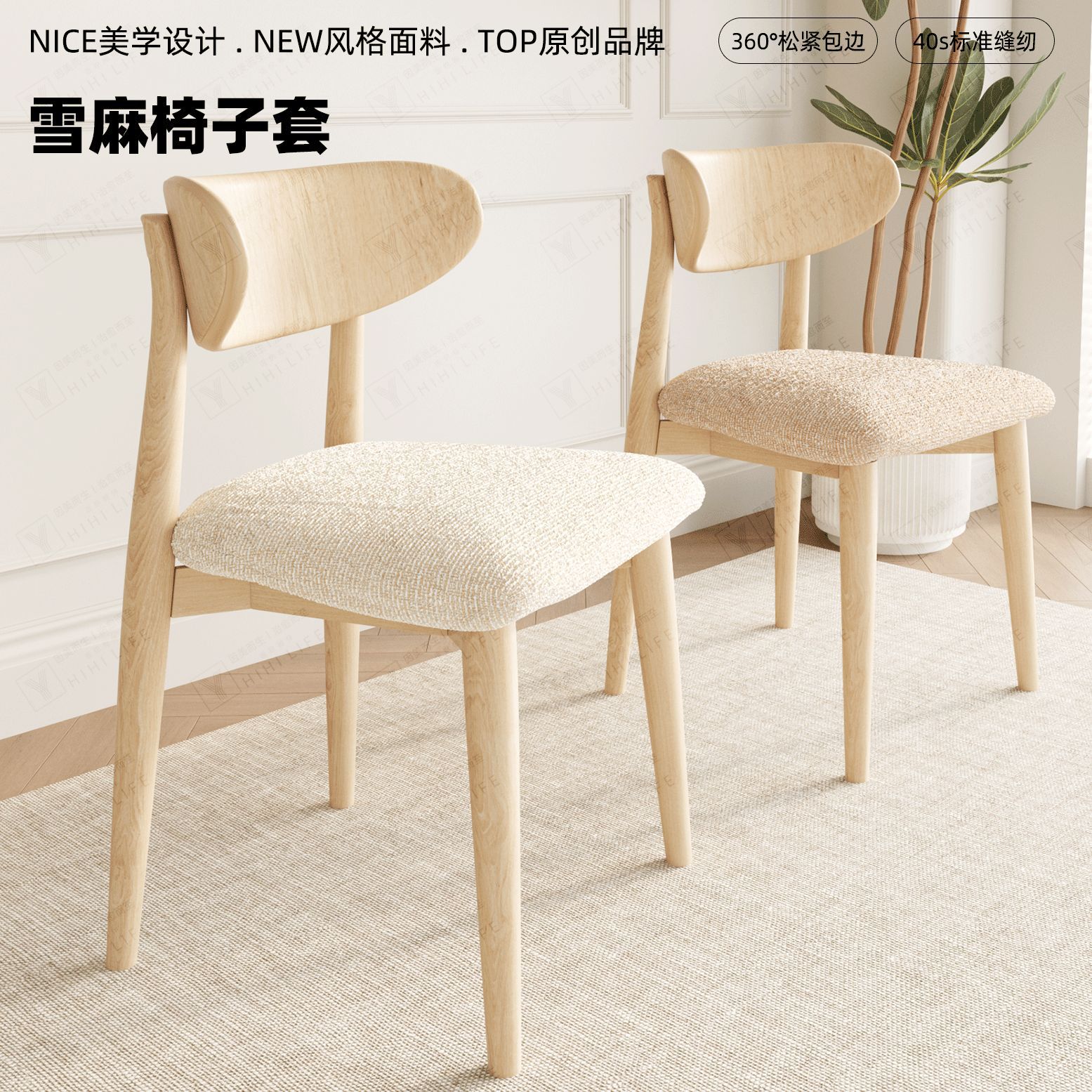 2025 新しいテクスチャ雪麻ダイニングチェアカバー背もたれ一体型ホーム寮オフィスレンタルハウス椅子カバー