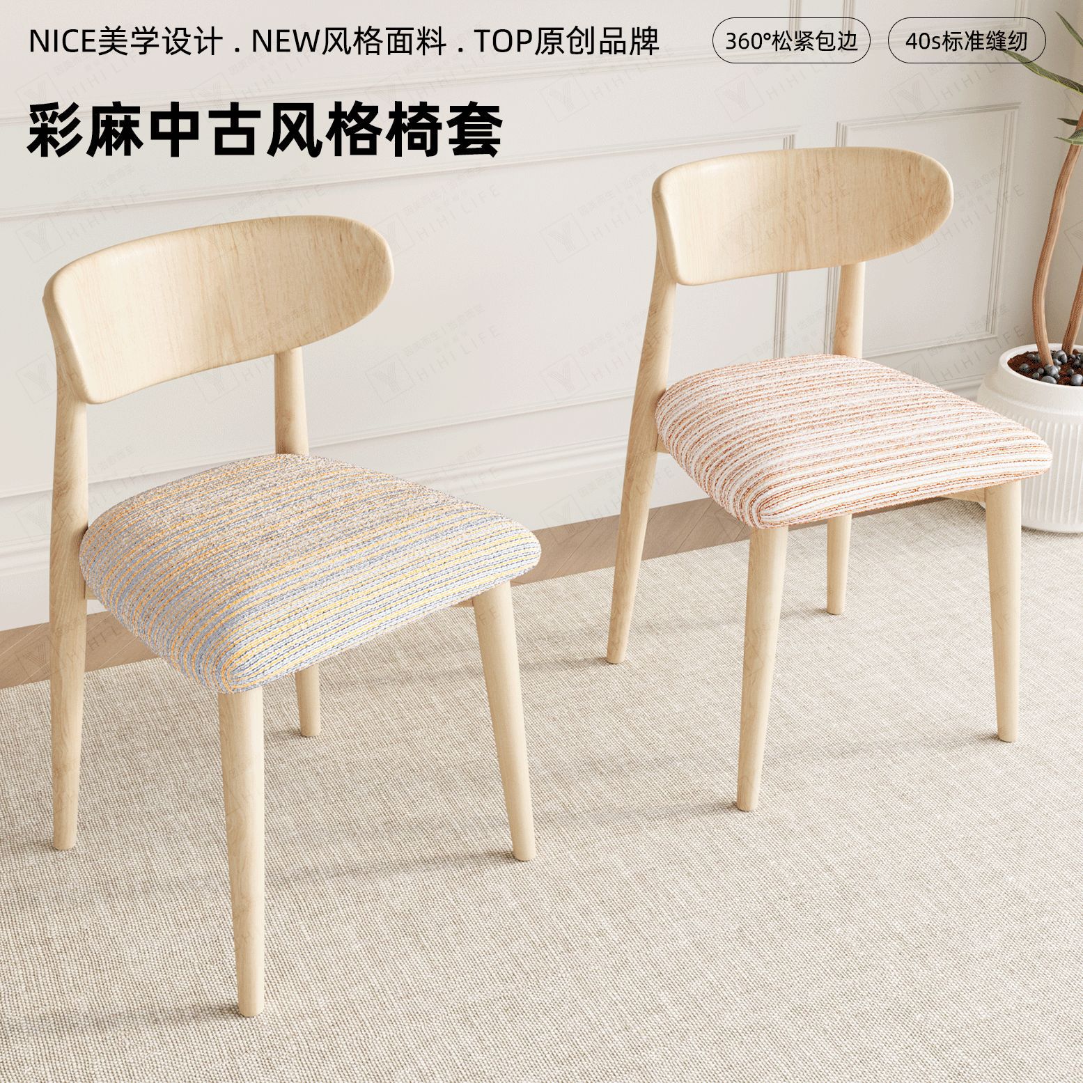 新款家用高级感彩虹麻感方块椅子套耐磨全包防滑方形餐椅套保护罩