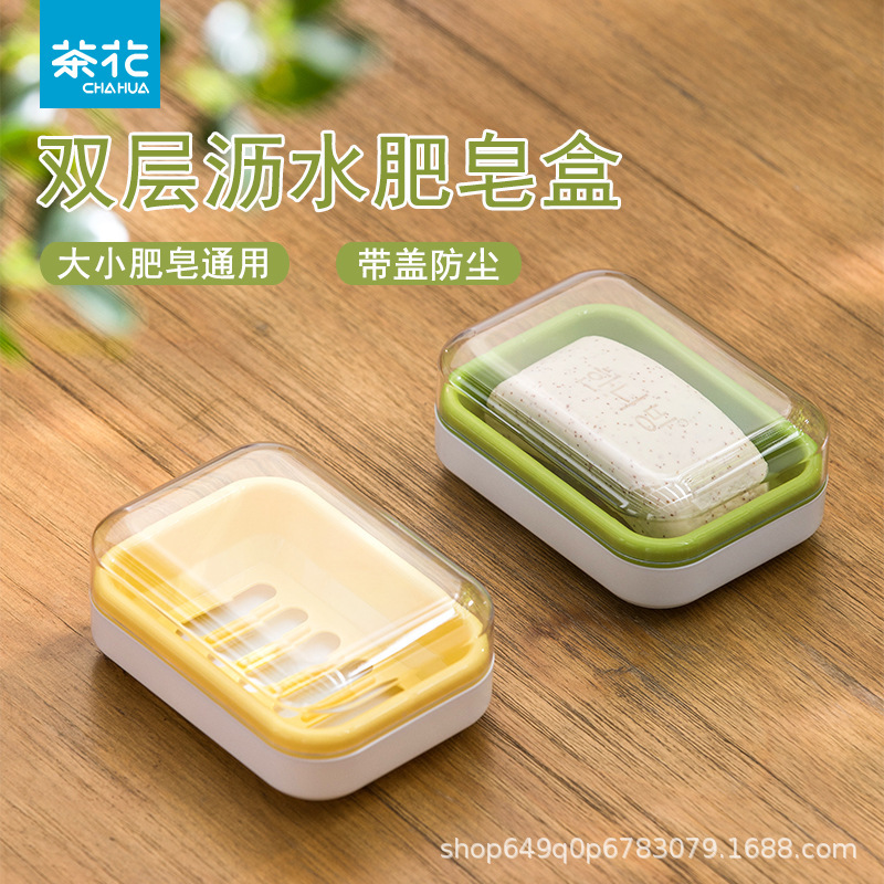 茶花石けん箱家庭用大型石鹸洗濯石鹸棚蓋付き二重アスファルト棚トイレ寮用