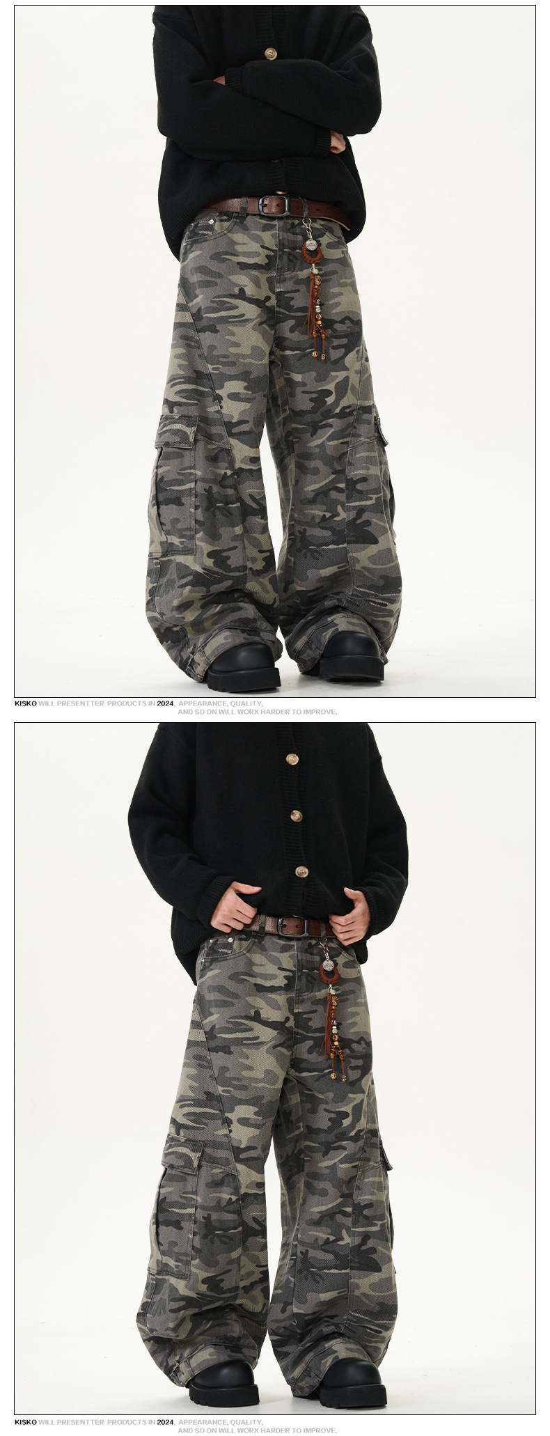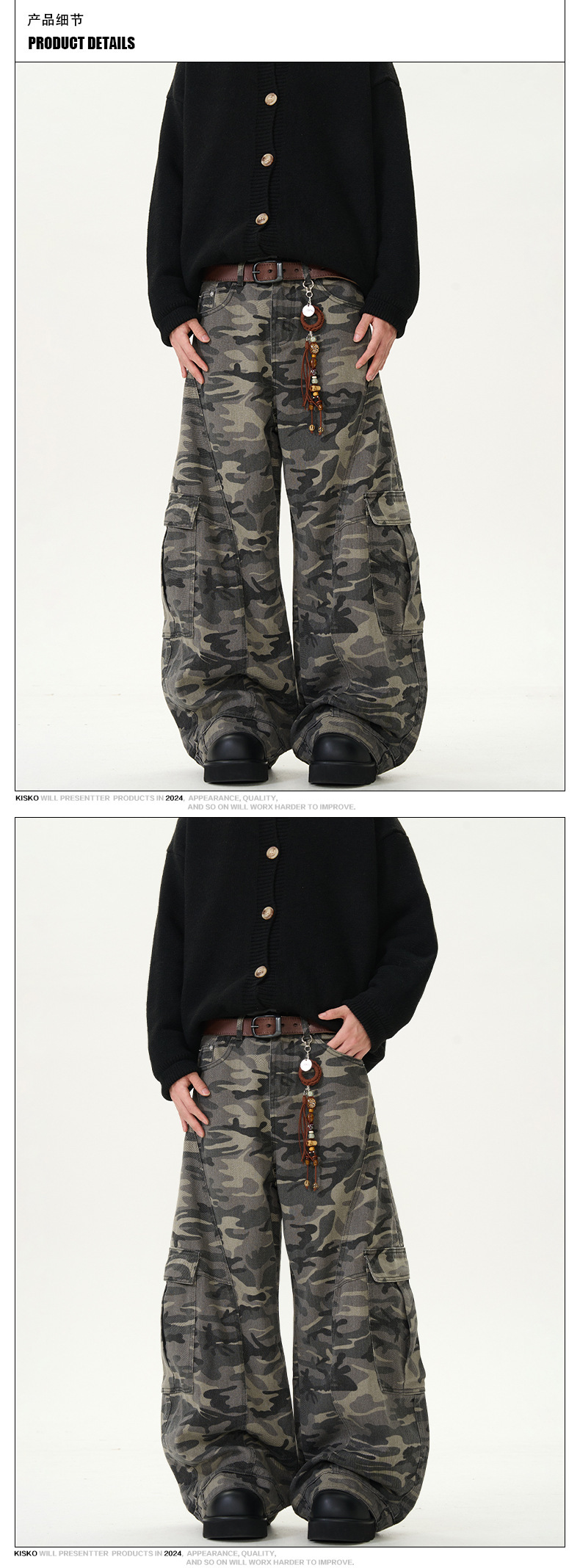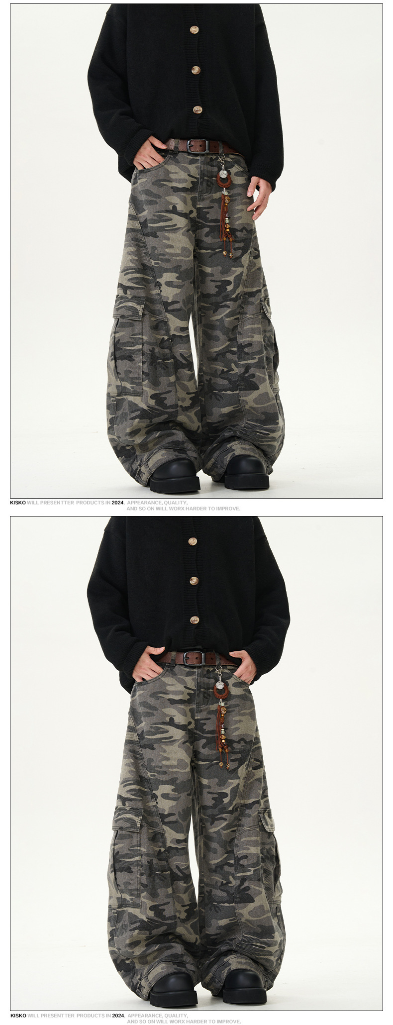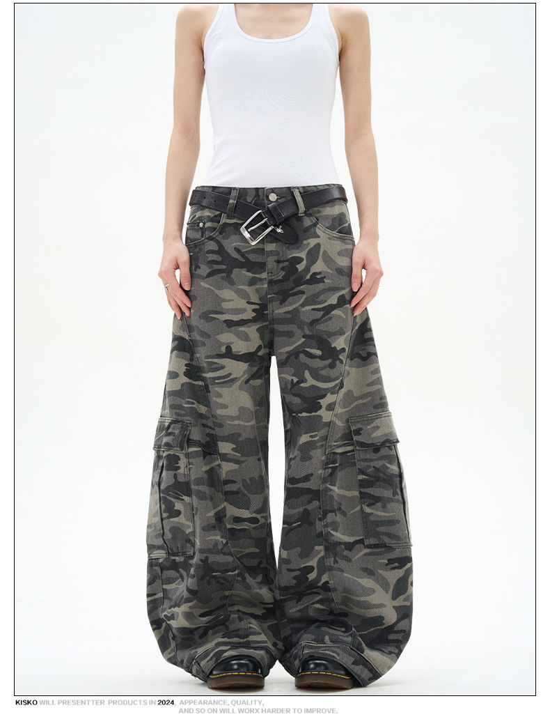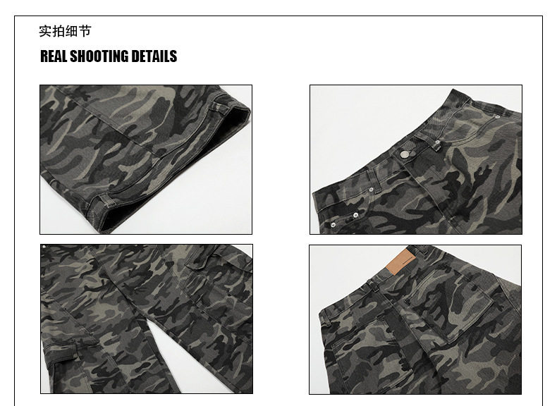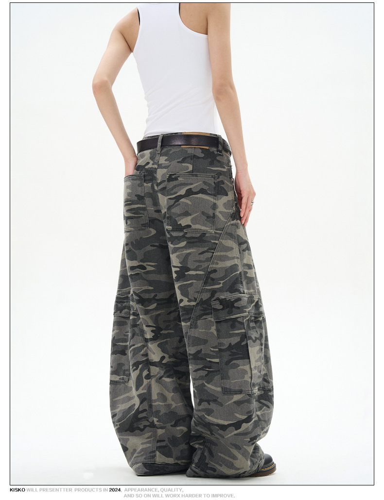 アメリカンレトロ迷彩ワイドレッグオーバーオールメンズトレンディブランドルーズで多用途なリバースウェアデザイン男性と女性用のスナイパージーンズ