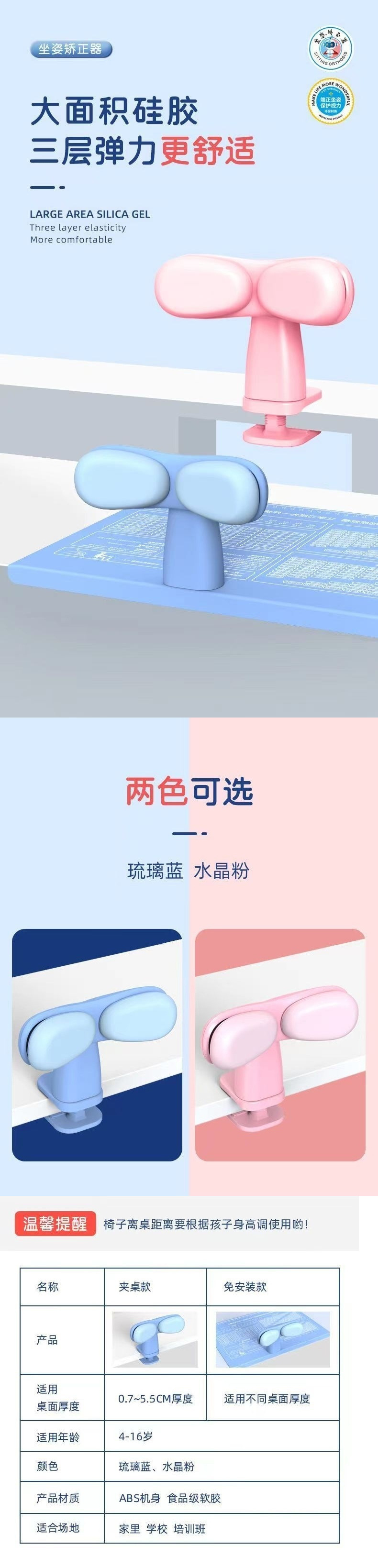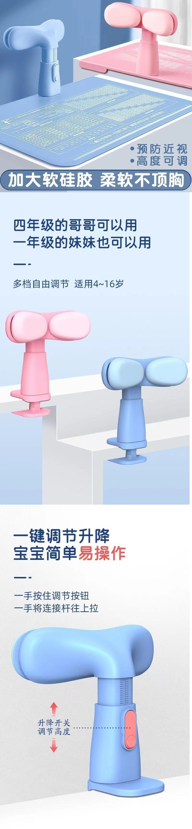 学生が座り姿勢矯正装置を学ぶ、近視の子供の書き込み姿勢矯正、目の保護装置の取り付け、メーカー卸売