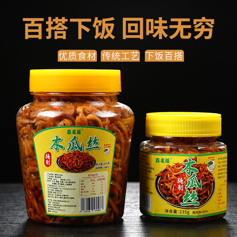 スパイシーパパイヤシュレッドソース、香り豊かなパパイヤストリップ、パパイヤキューブ、前菜、広西四川漬け、卸売560g/ボトル