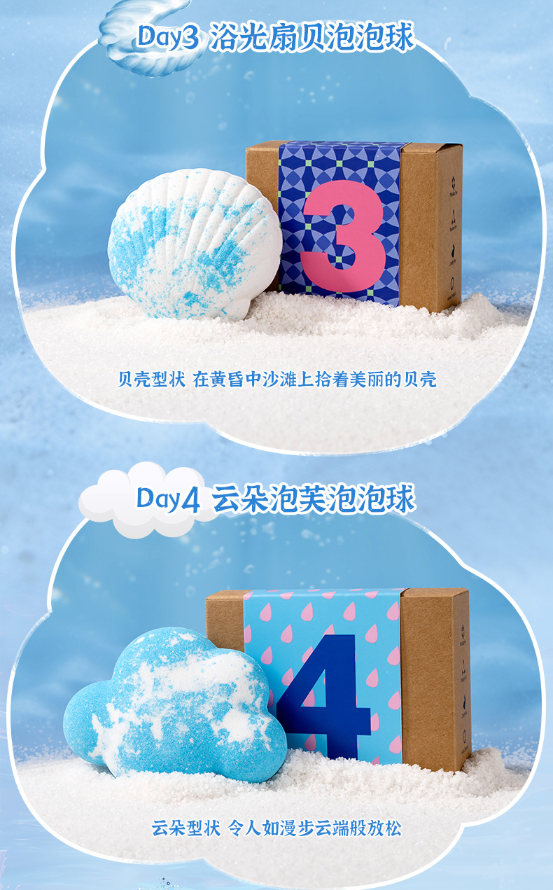 正味内容 Day1 オーシャンバブルボールとの出会い,Day2 貝殻レター バブルボール,Day3 バスライトホタテバブルボール,Day4 クラウドパフ バブルボール,Day5 オーシャンロマンティックバブルボール