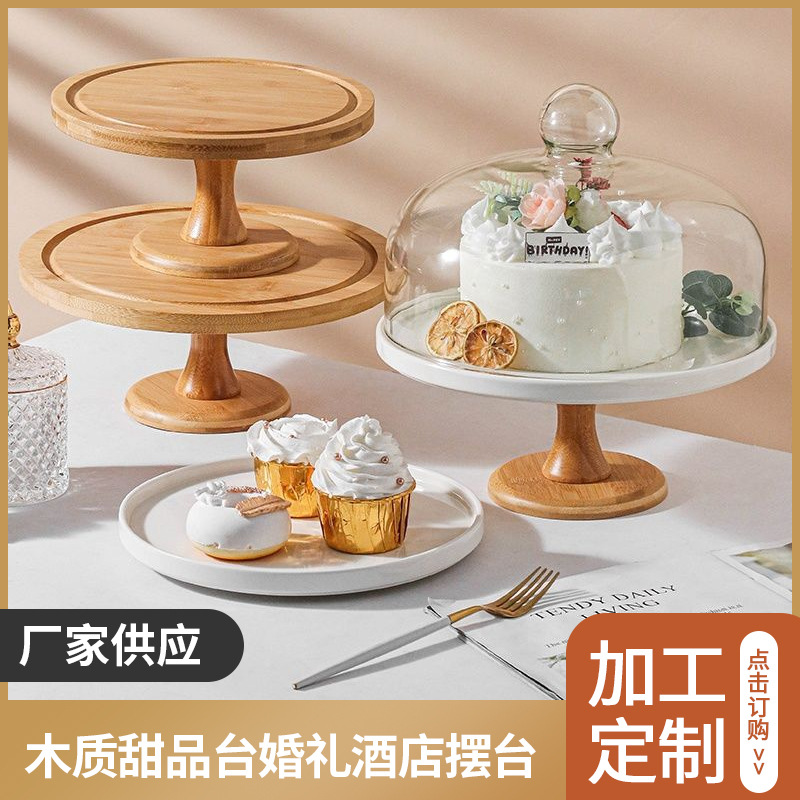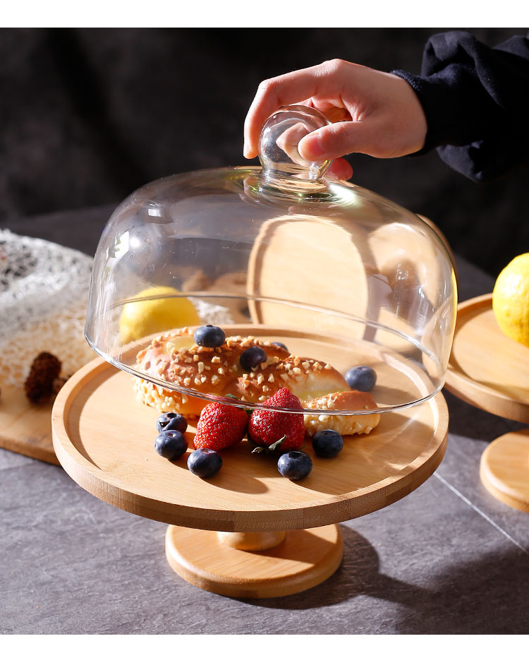 木製ケーキ展示トレー高脚トレー台デザートガラスカバー透明果物菓子パン試食皿メーカー