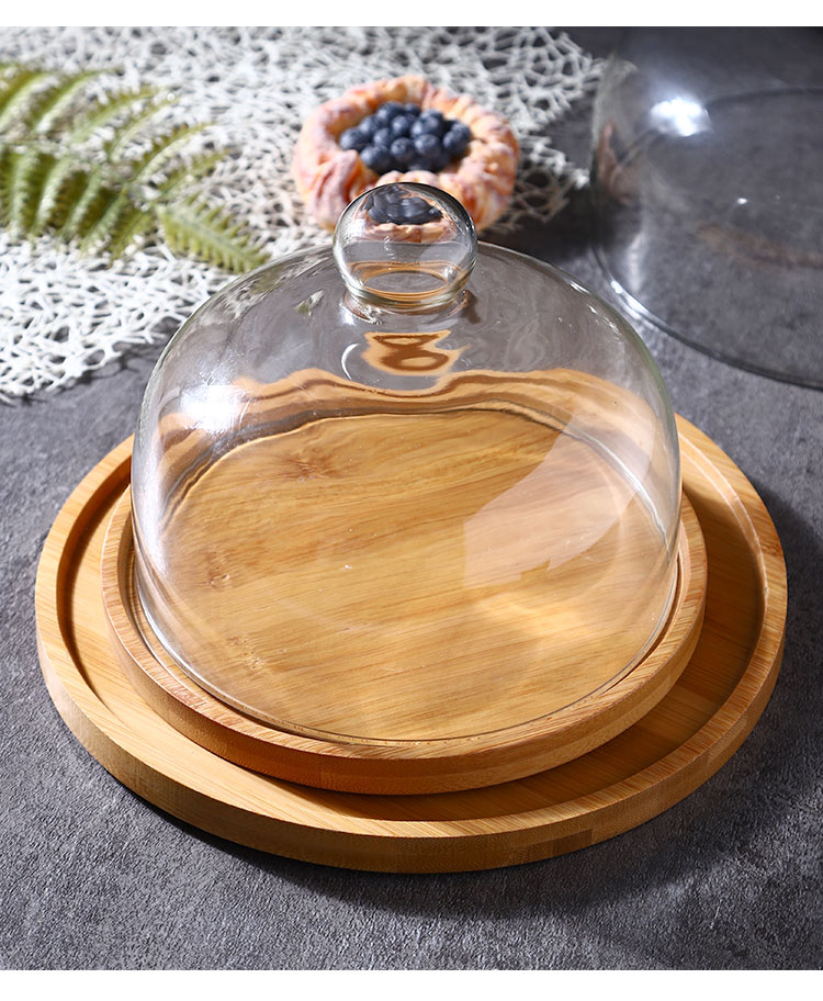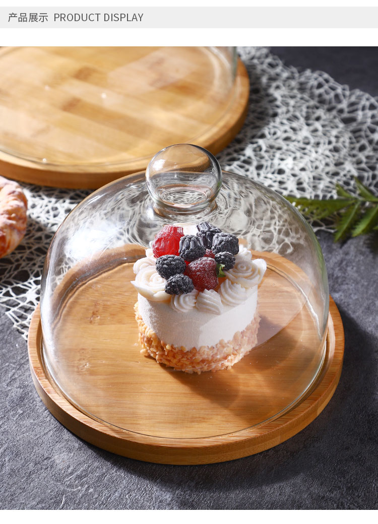 透明玻璃罩下午茶蛋糕罩木质不可旋转盘西点托盘水果甜点