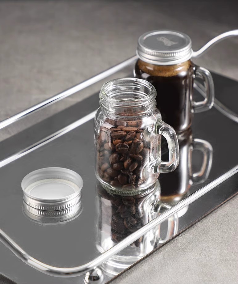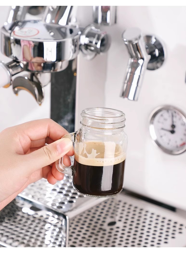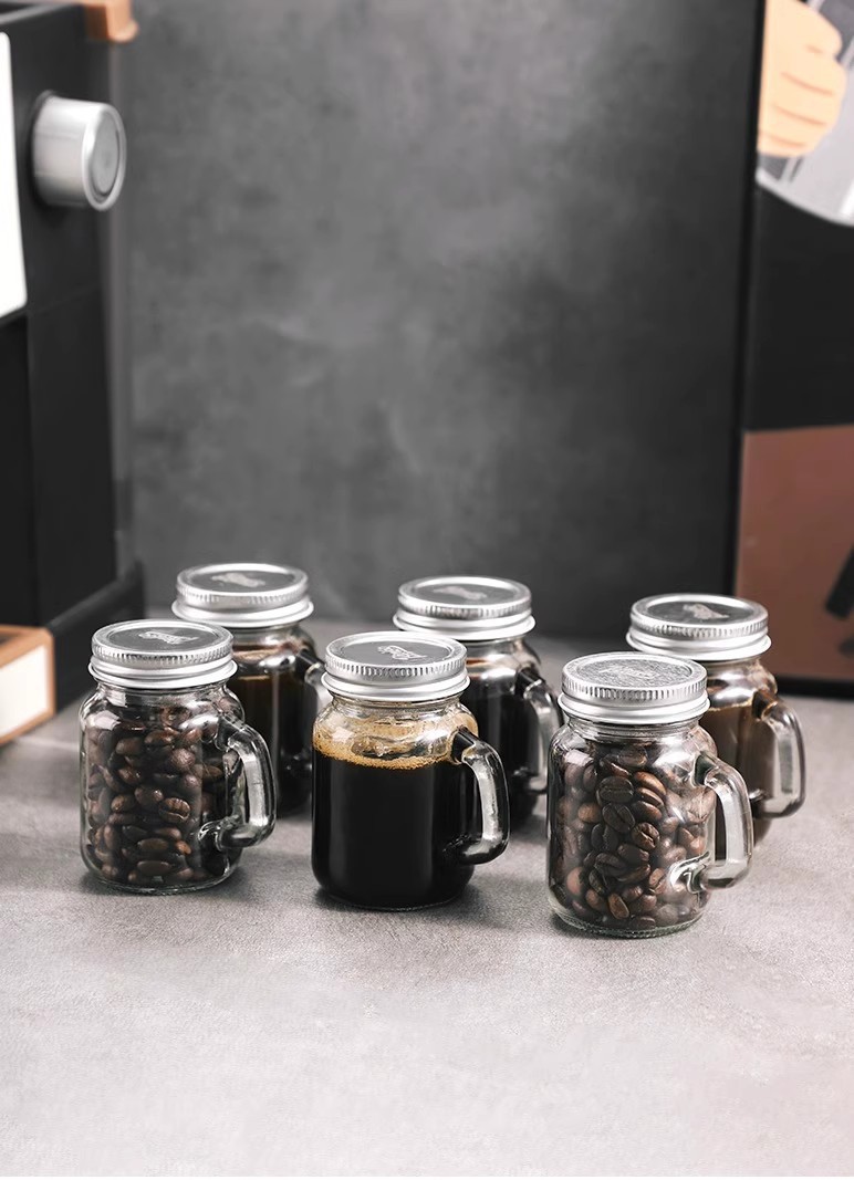 スポットミニガラスコーヒーエスプレッソボトルハンドルシールメイソンカップショットグラスハニージャムボトル
