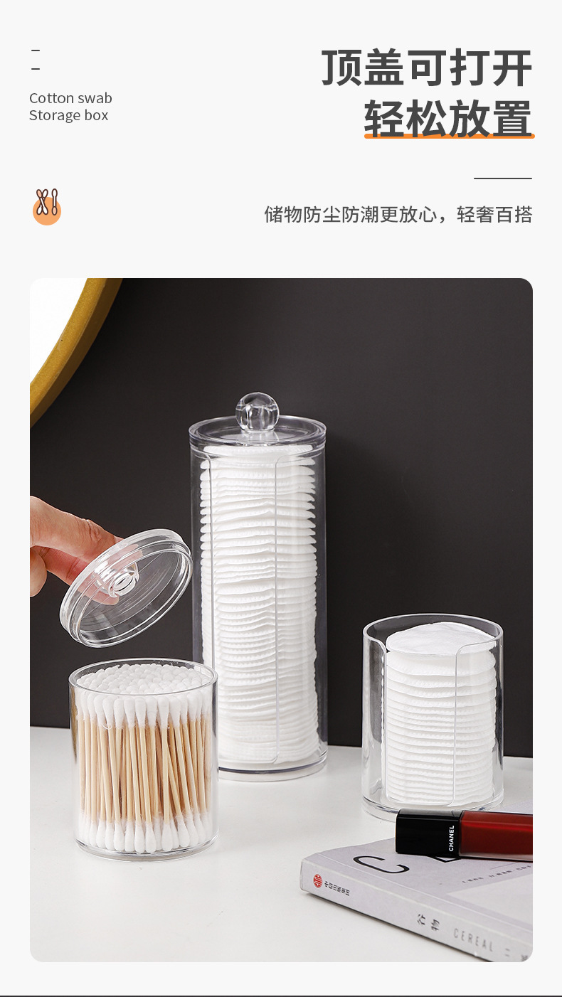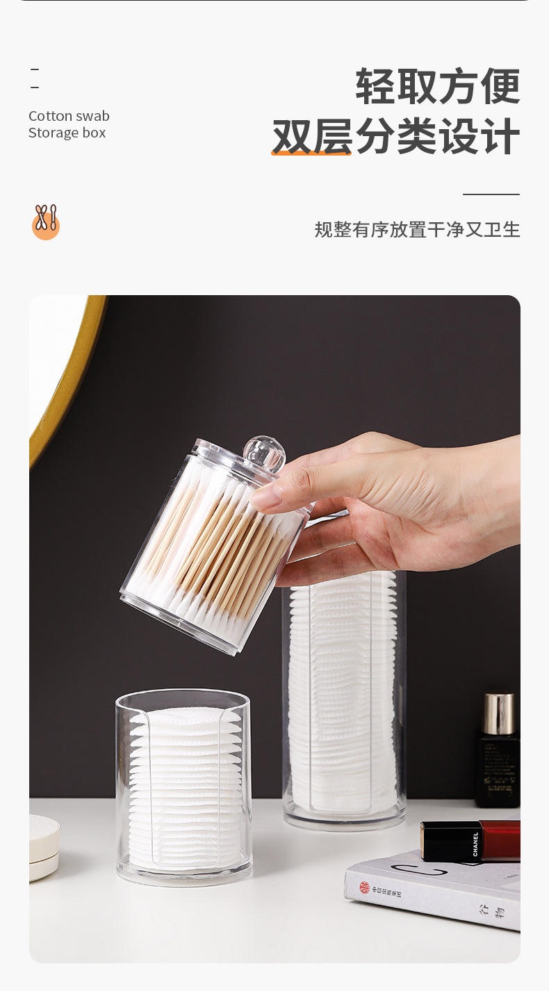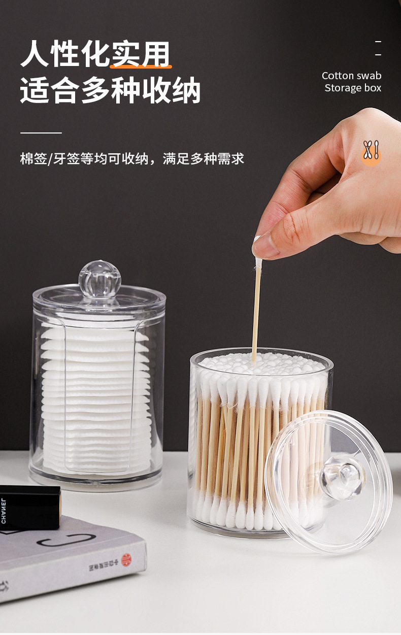 圆形亚克力棉签盒 带盖防尘化妆棉收纳盒牙线 盒网红棉签收纳盒