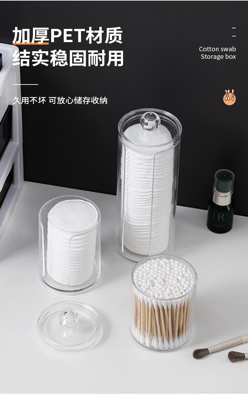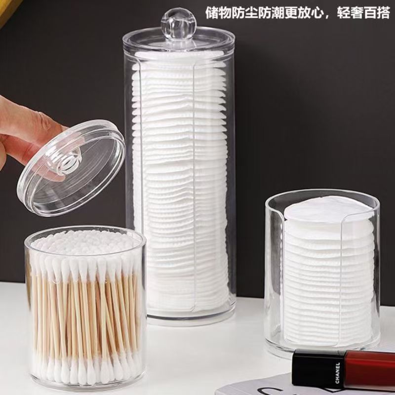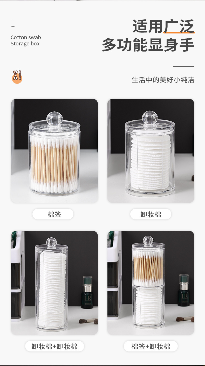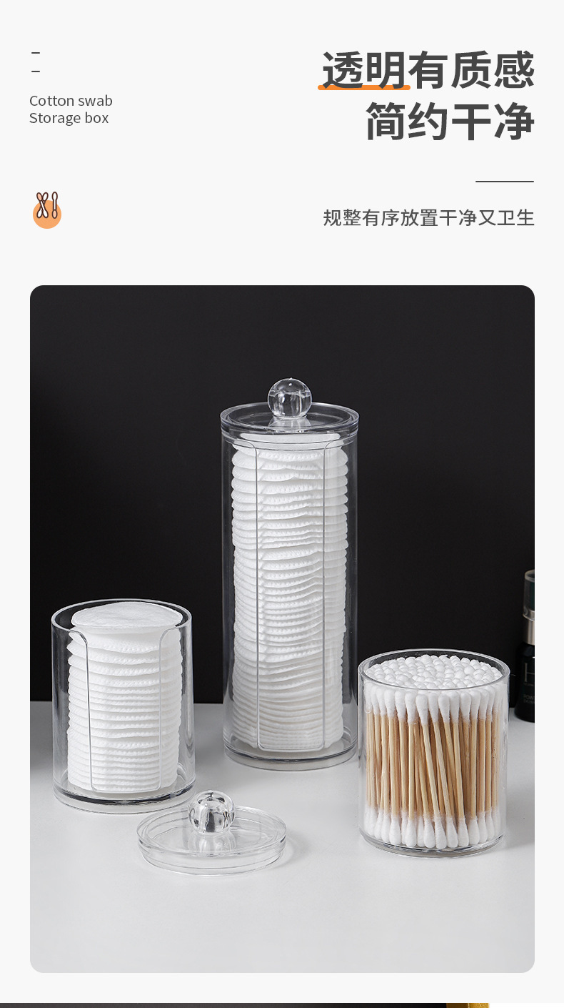 圆形亚克力棉签盒 带盖防尘化妆棉收纳盒牙线 盒网红棉签收纳盒