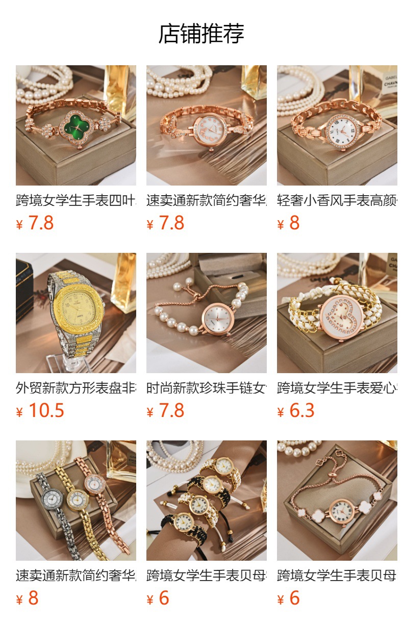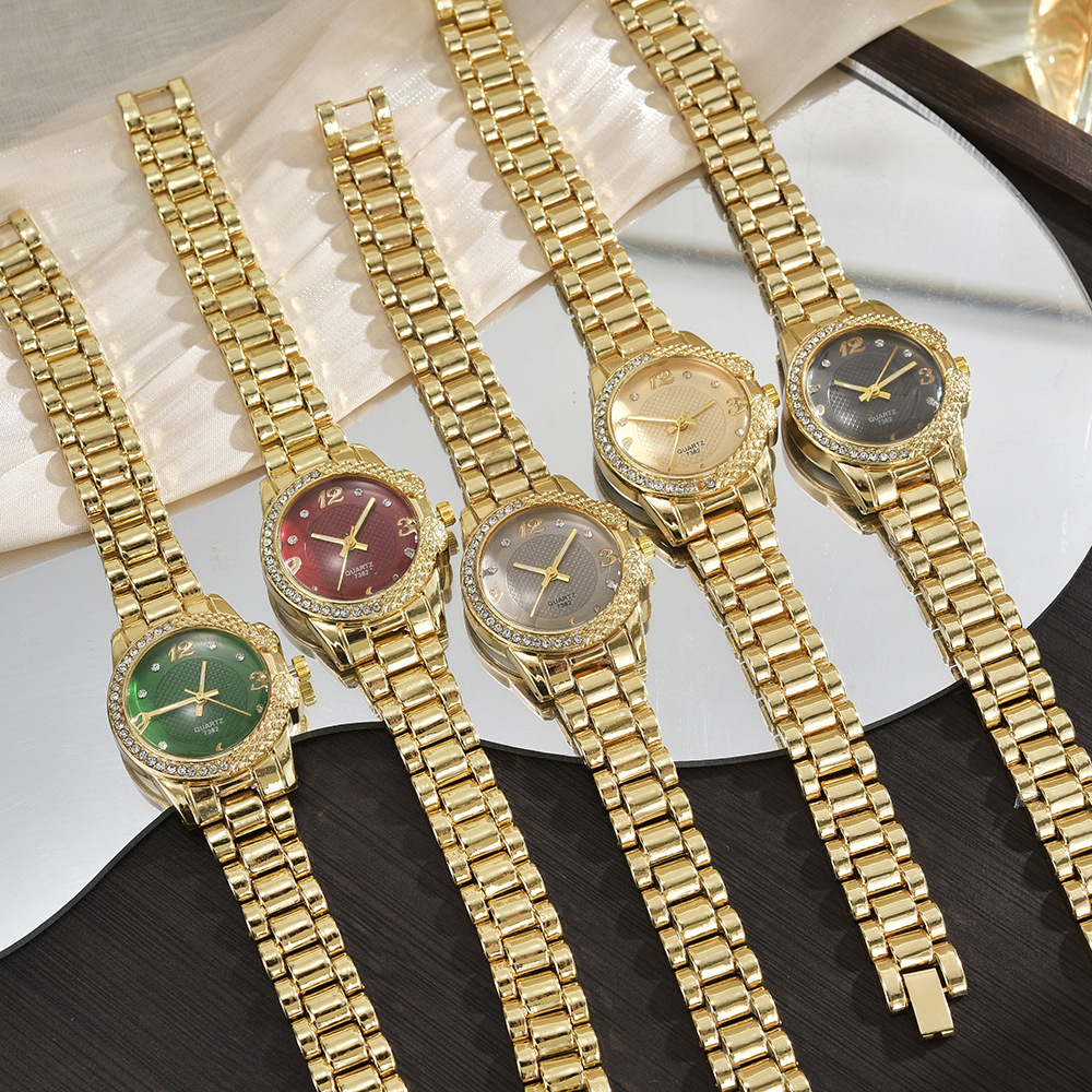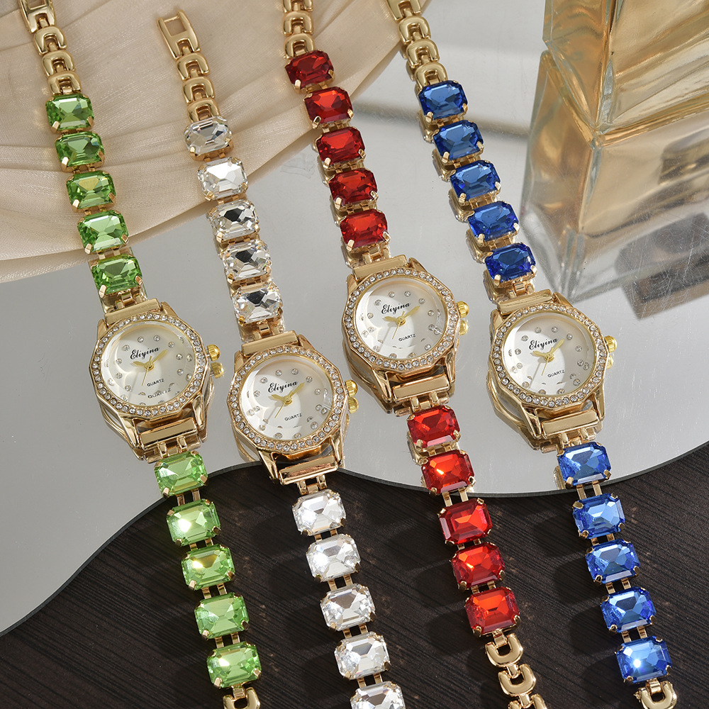 女石英时装手链表套装网红跨境外贸时尚小盘女手表镶彩钻女士手表