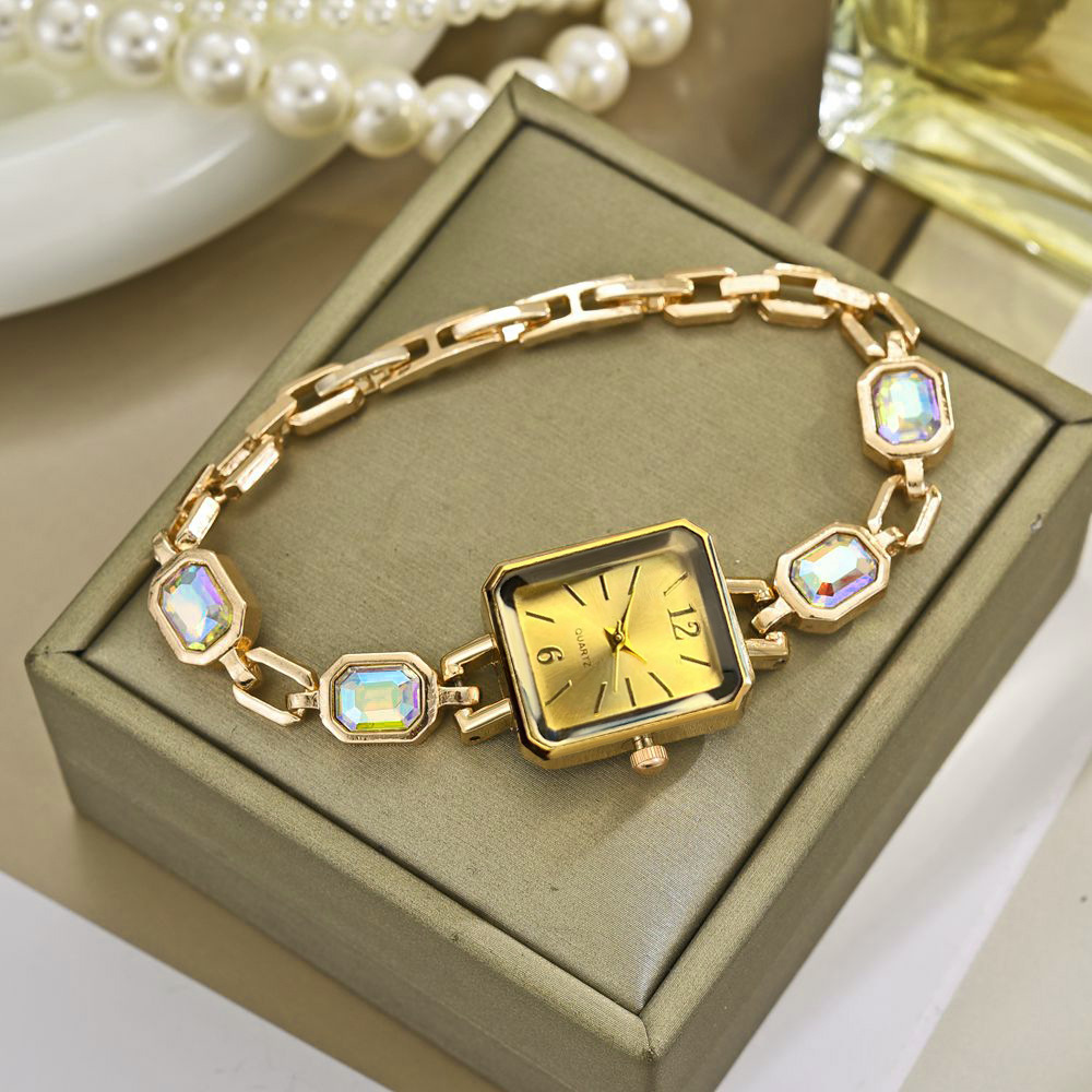 軽豪華小香風腕時計高颜値気質学生カジュアル女子時計満ドリル模造宝石方形多色チェーン時計
