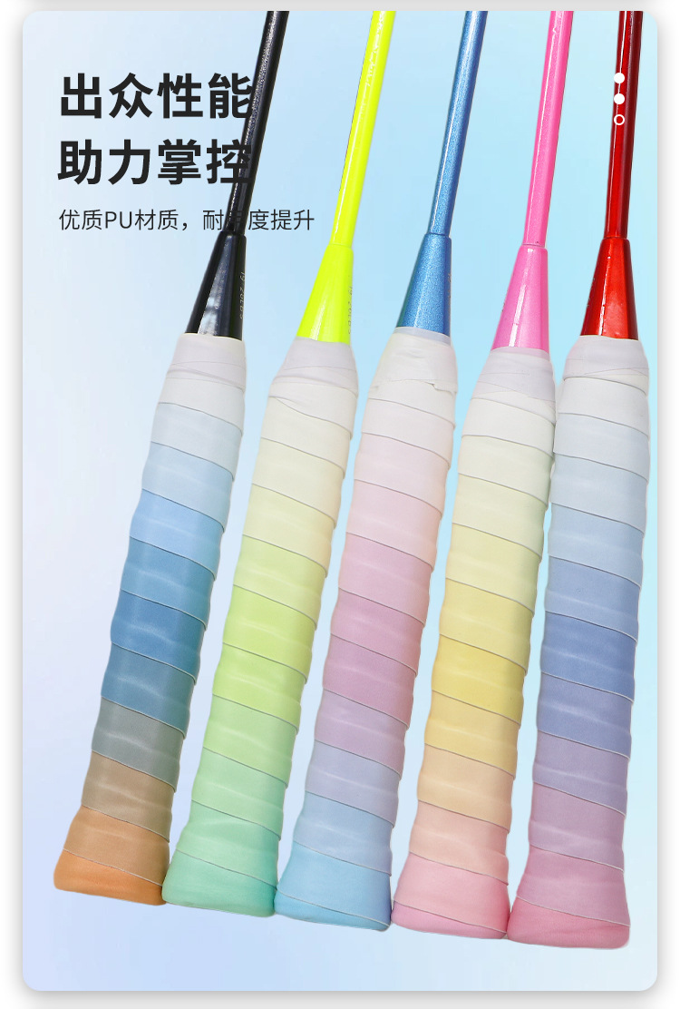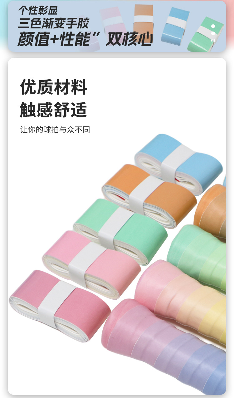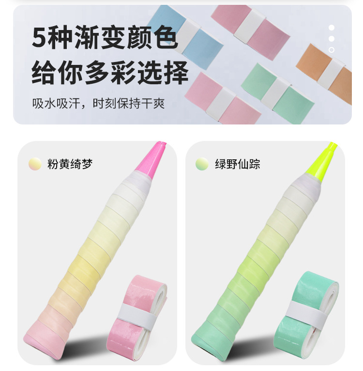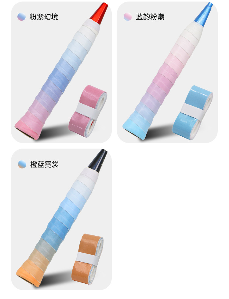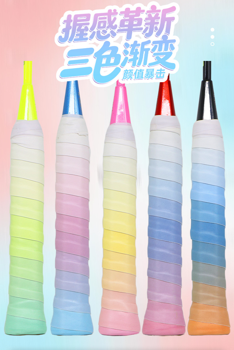 バドミントンラケットマカロン3色グラデーションフラットハンドジェル滑り止め吸汗テニスラケット釣竿弾性ハンドルストラップ