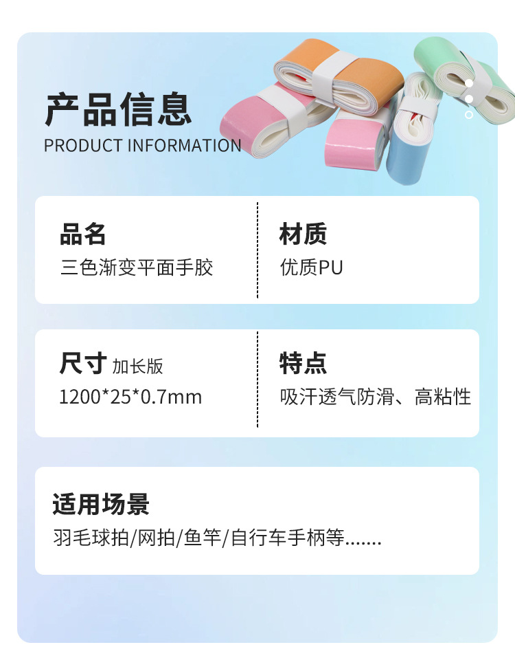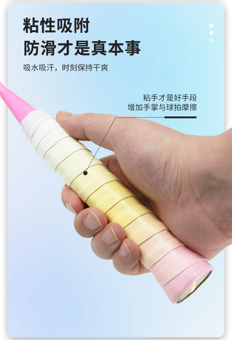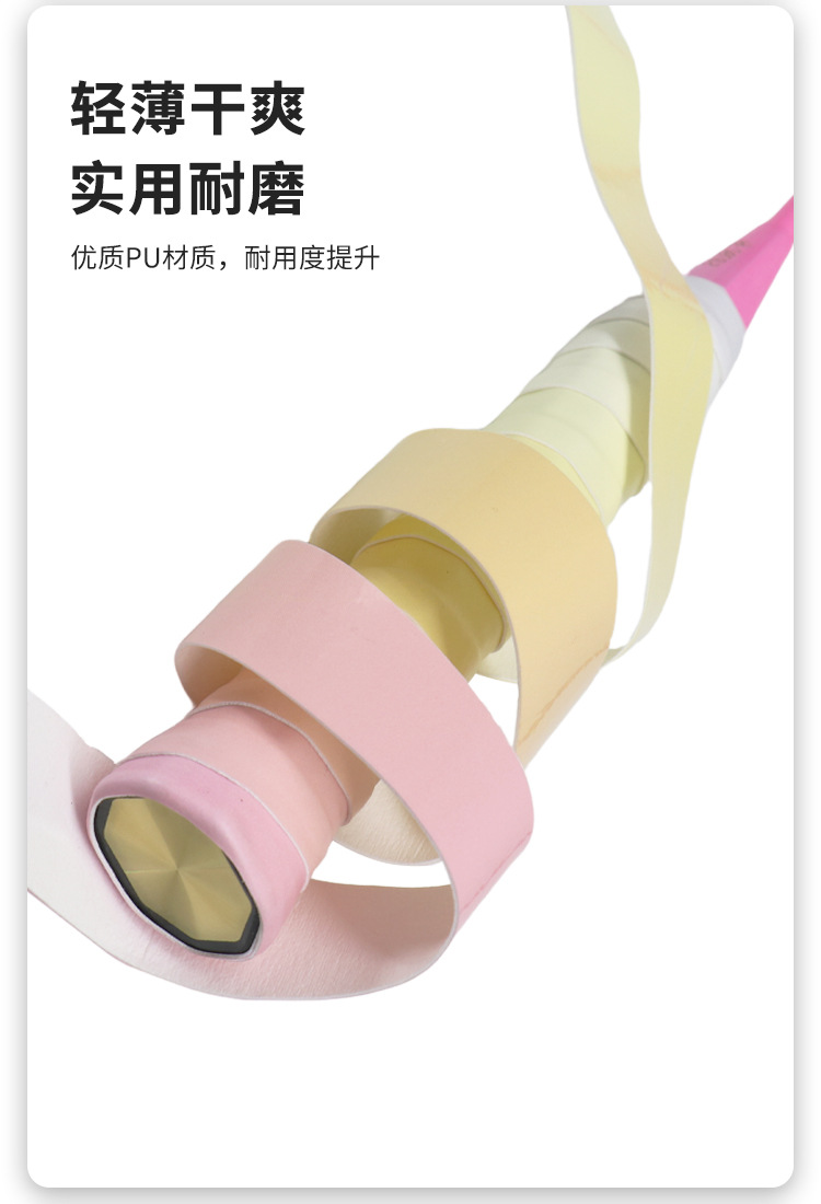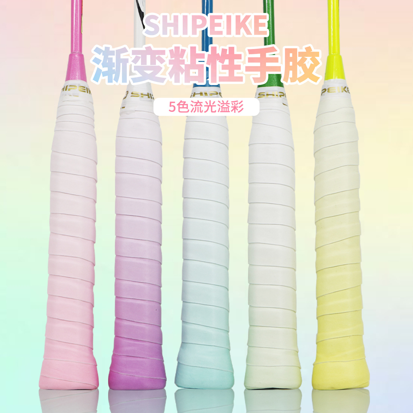 バドミントンラケットマカロン3色グラデーションフラットハンドジェル滑り止め吸汗テニスラケット釣竿弾性ハンドルストラップ