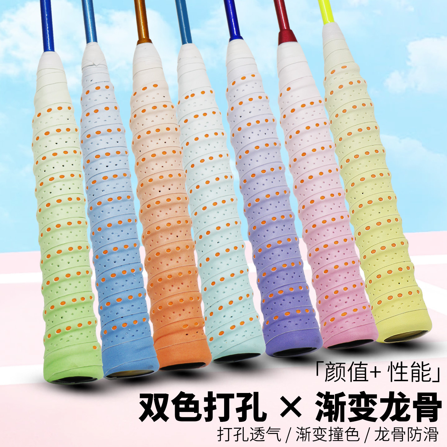 渐变色双色打孔龙骨手胶防滑透气减震羽毛球拍吸汗带羽握把缠绕带