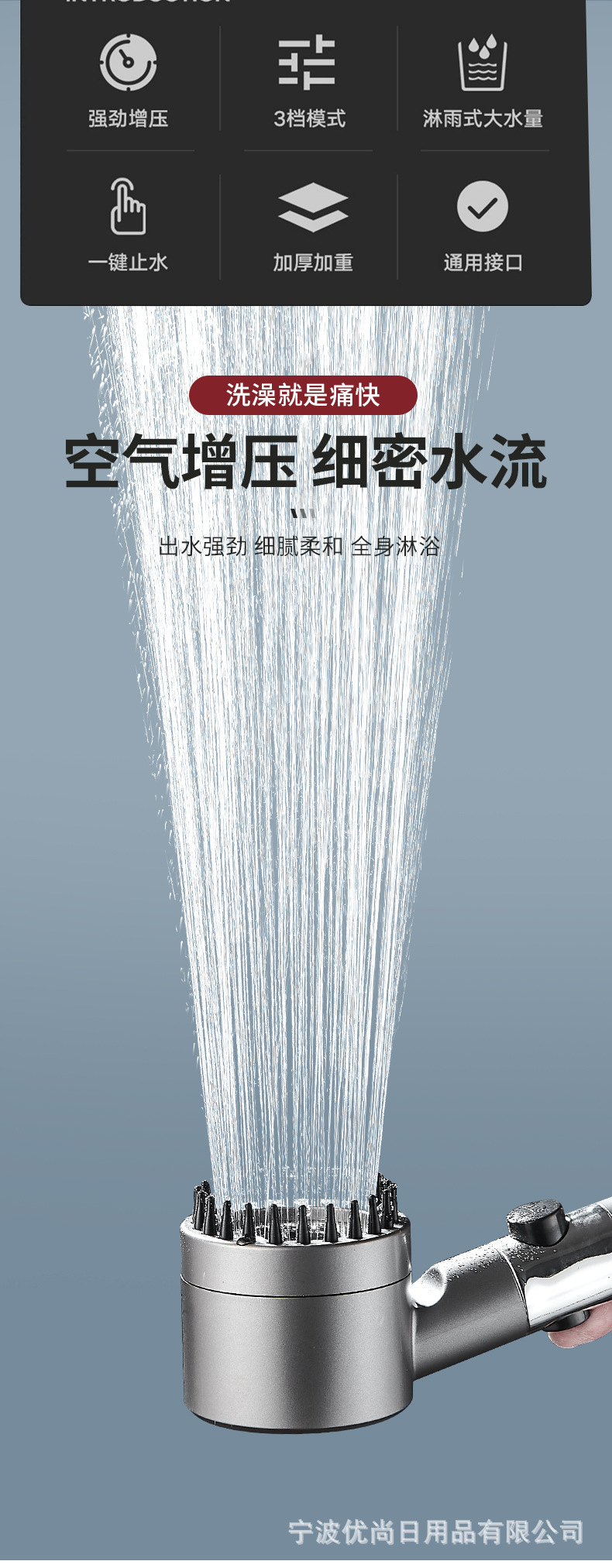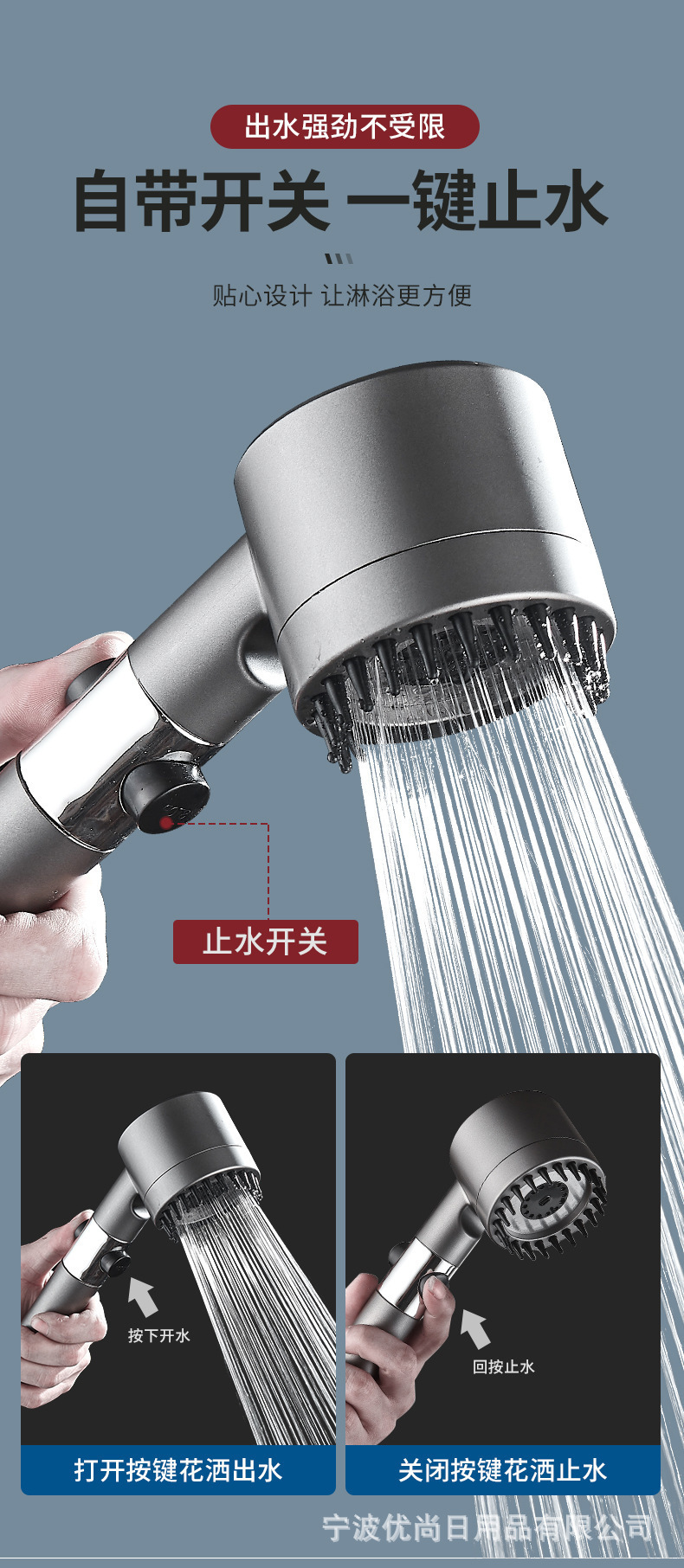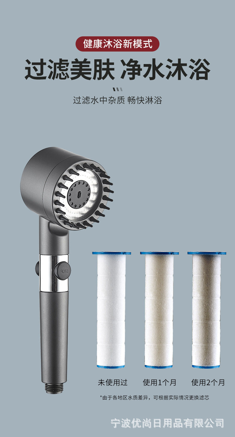 クロスボーダーは強い増圧シャワーヘッドをつけます。バスルームはシャワーヘッドを濾過します。
