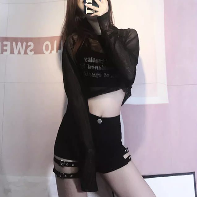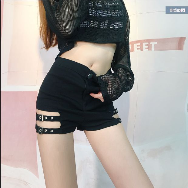 ホットガール夏のパンクスタイルショーツ女性ジャズダンス黒オートバイハイウエストポールダンス弾性ヒップカバーホットパンツ