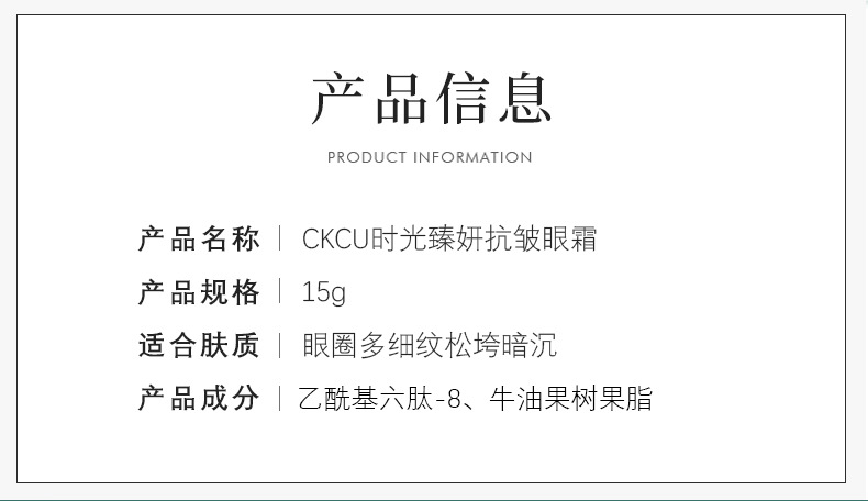 严CKCU时光臻妍抗皱眼霜紧致淡化细纹黑眼圈眼周眼袋女批发代发