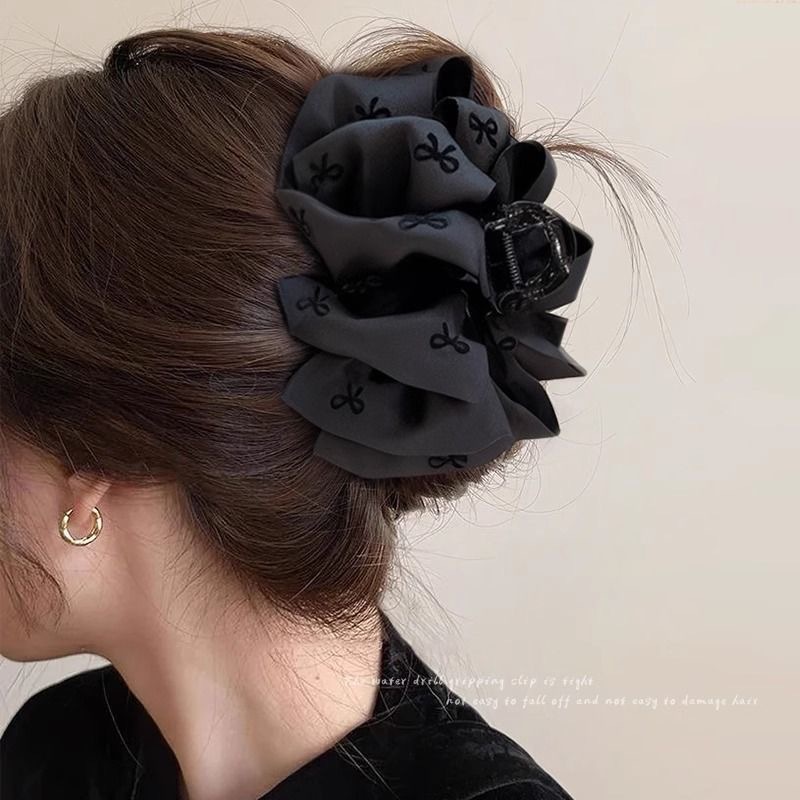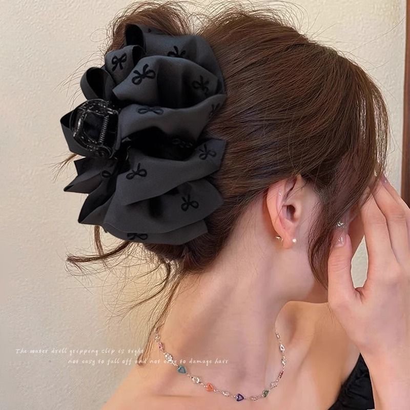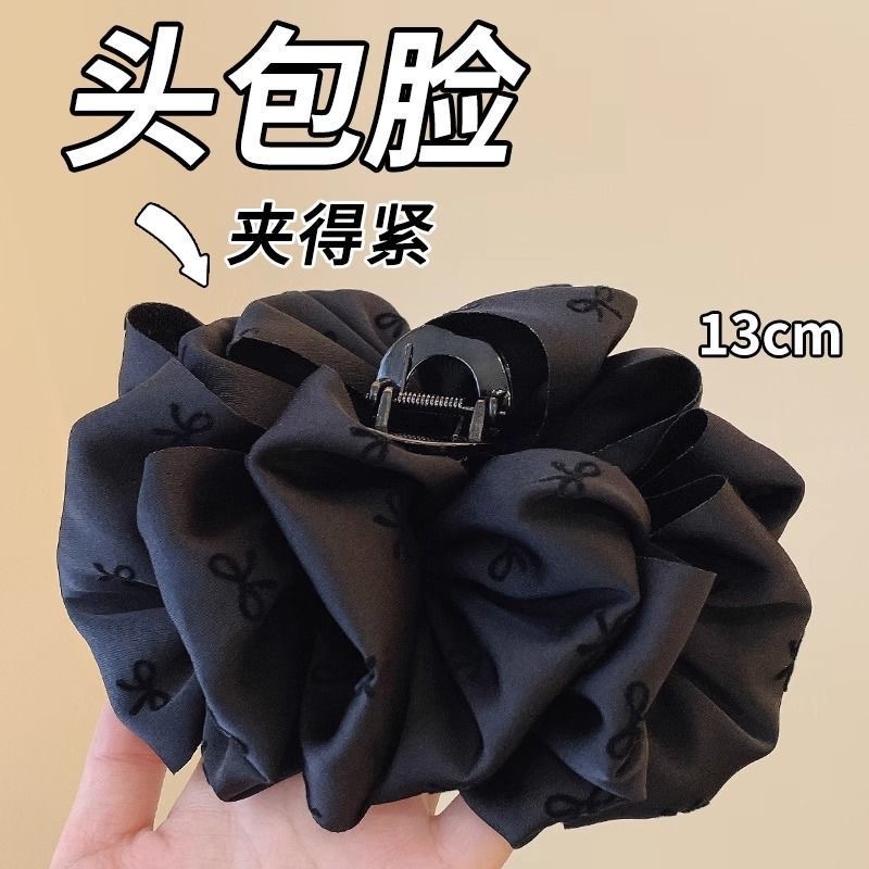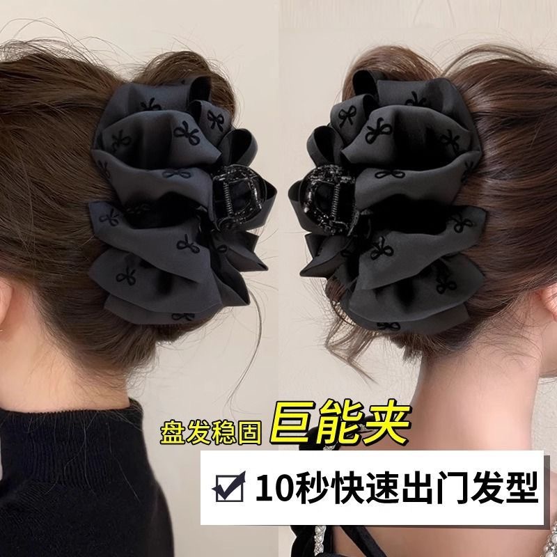 ブラックリボンクラウドバブルグリッパー女性のハイエンド2025新しい大型ヘアピン気質サメクリップヘッドバンド