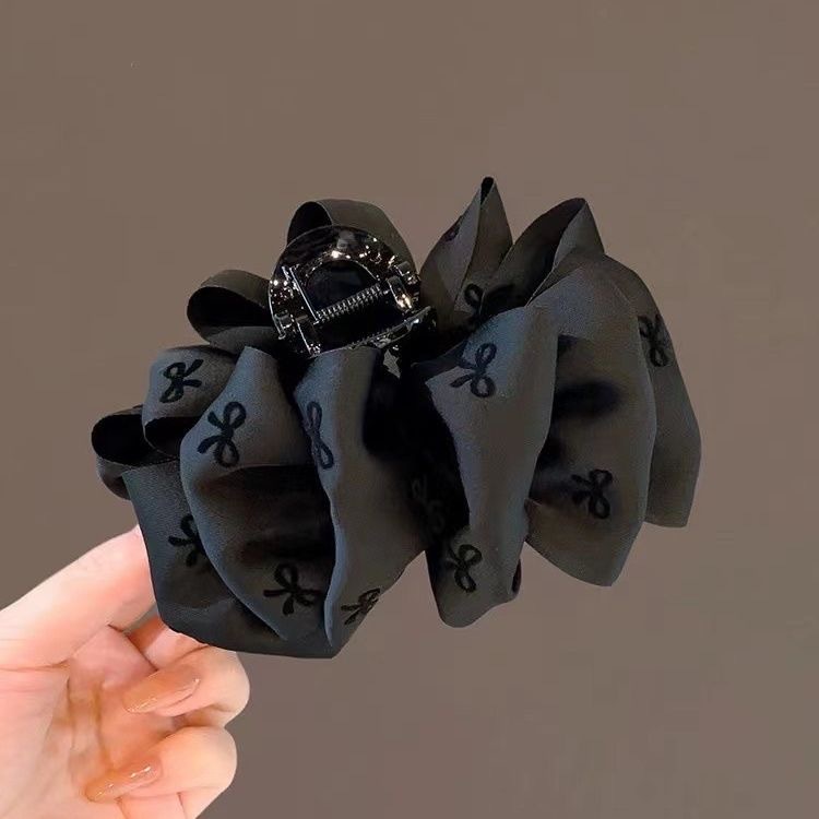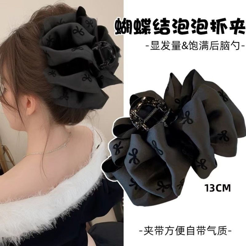 クリップ女子2025新高級感黒泡蝶ネクタイのヘアピン大後頭部盤髪サメクリップ