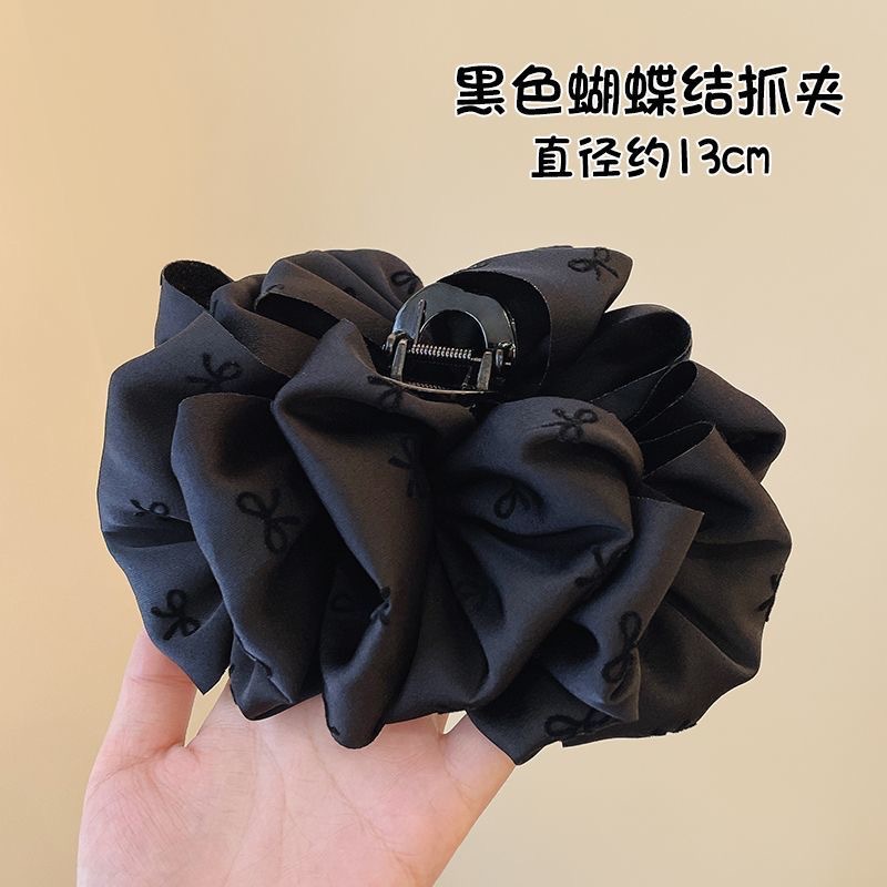 黒いサテンの大きい蝶結びの髪飾りの女性2024の新型の後頭部のクリップの髪飾りの秋冬のネットの赤い髪のカード