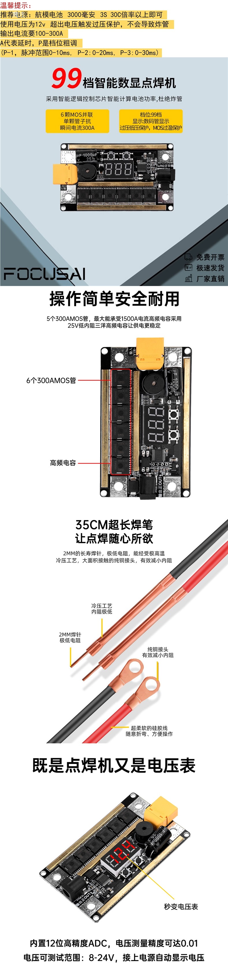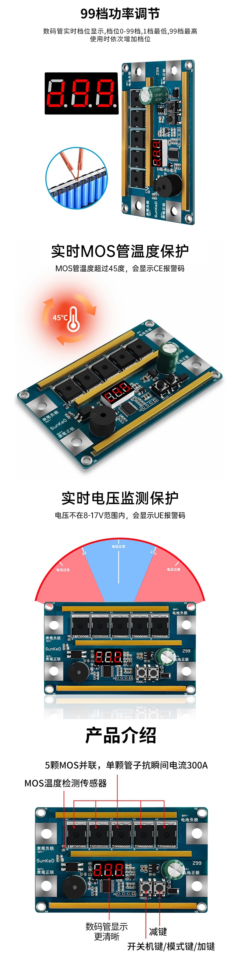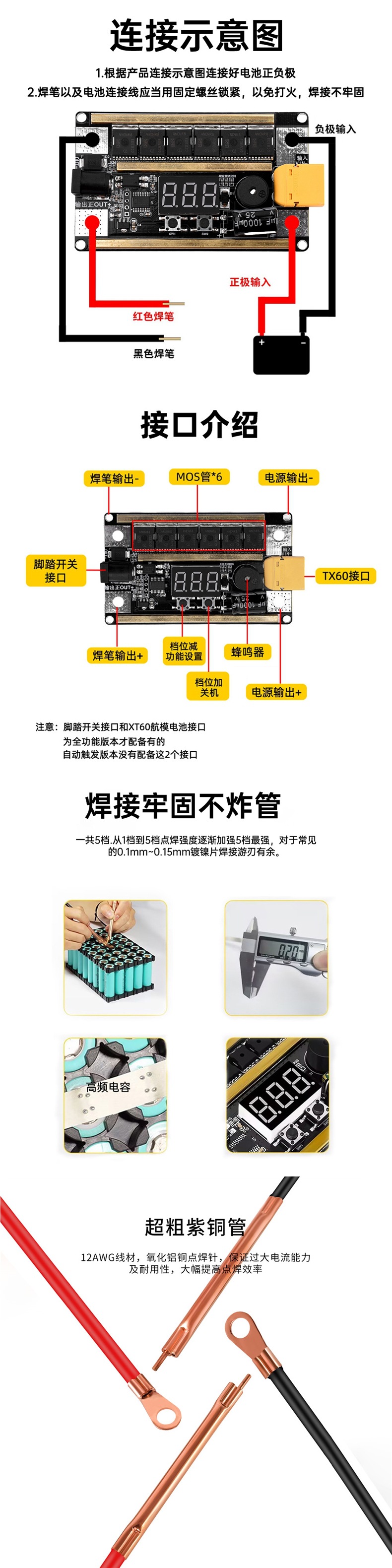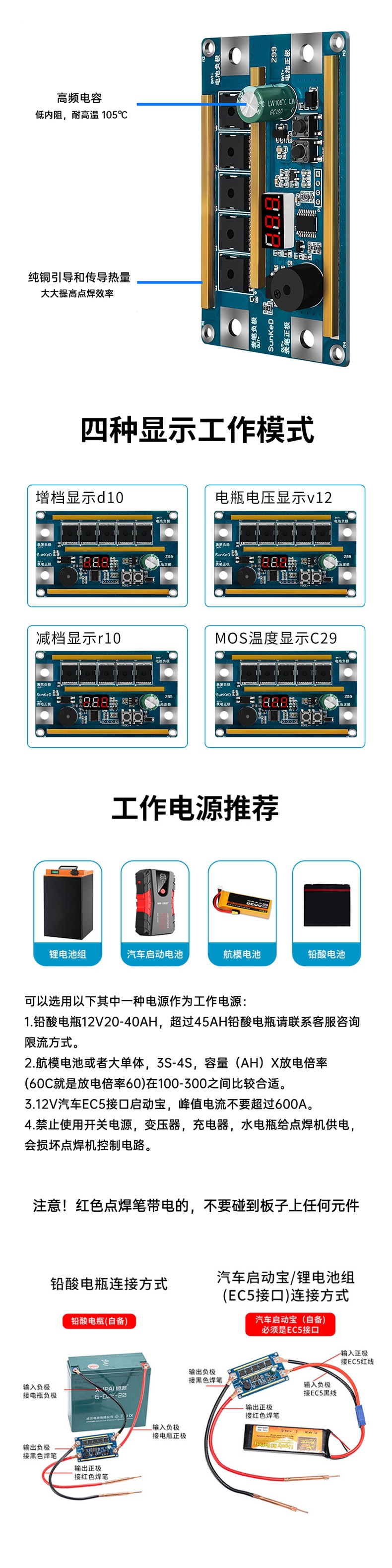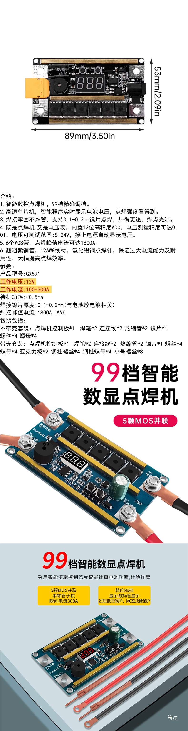 K99 家用手持18650锂电池12V点焊机DIY全套配件主板碰焊