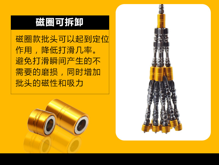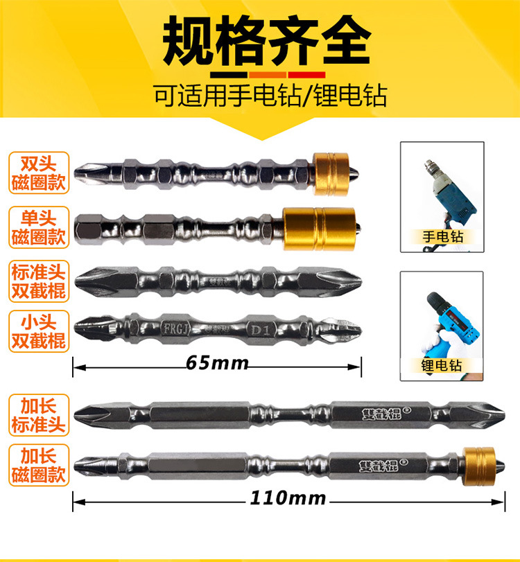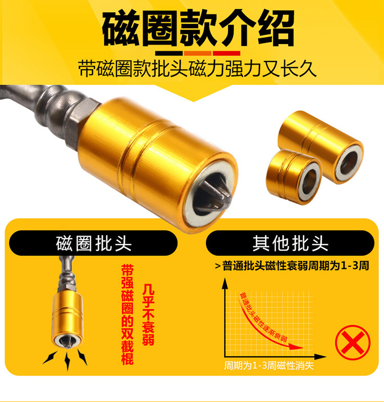 磁圈电动螺丝刀加长批头套装十字风批披头强磁性手电钻高强度六角