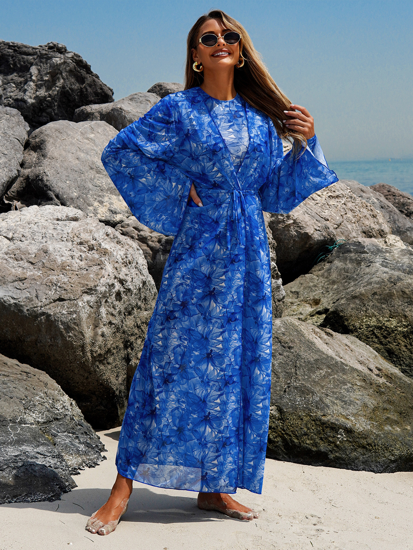 Blue,ロイヤルブルー,フリーサイズのビーチスカート (45-87.5kg 番)