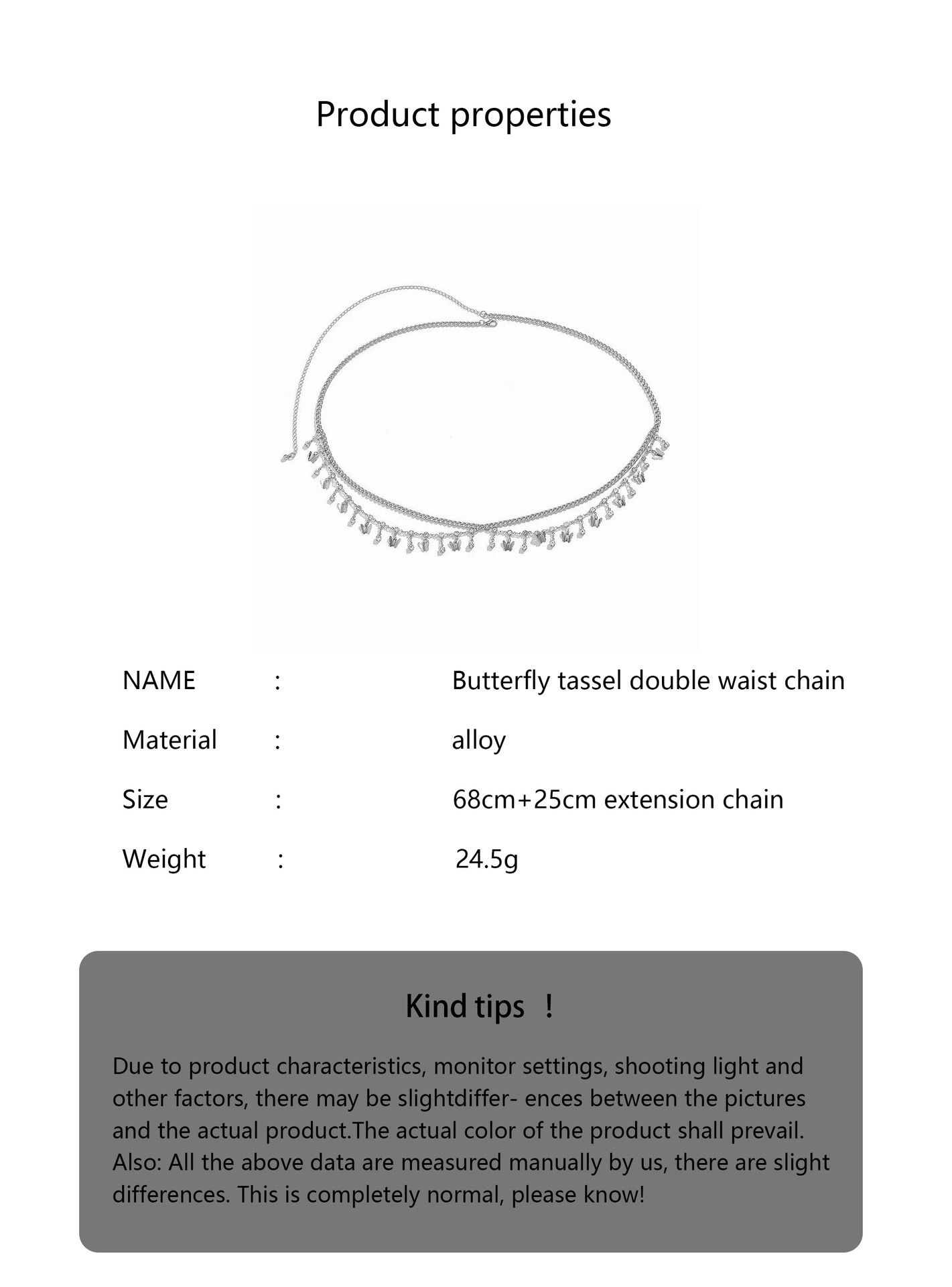 個性的なギャルの腰のチェーンの西ミアの蝶のドリルのチェーンの欧米の多層のフリンジビーチのビキニの手作りの腰の装飾