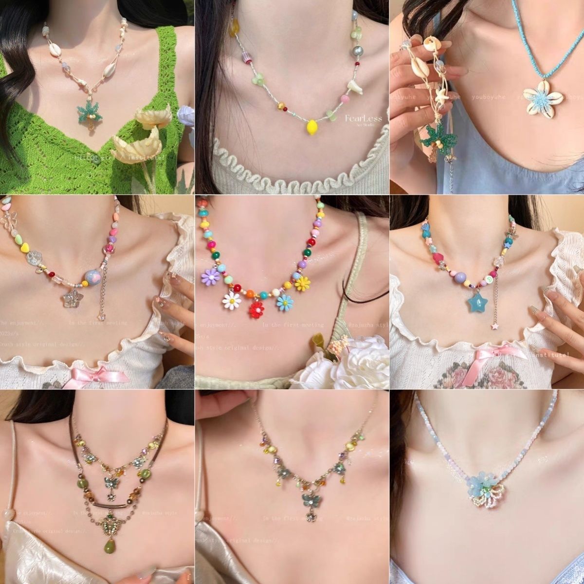 おかしな味の少女 ~ 夏の大衆の設計の百合insの新型は色の通勤の斑点の犬の色の数珠のネックレスにぶつかります。