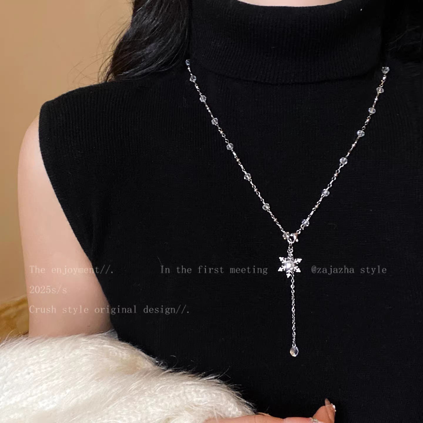 浪漫冬日~雪花锆石流苏项链女高级感精致气质毛衣链小众设计配饰